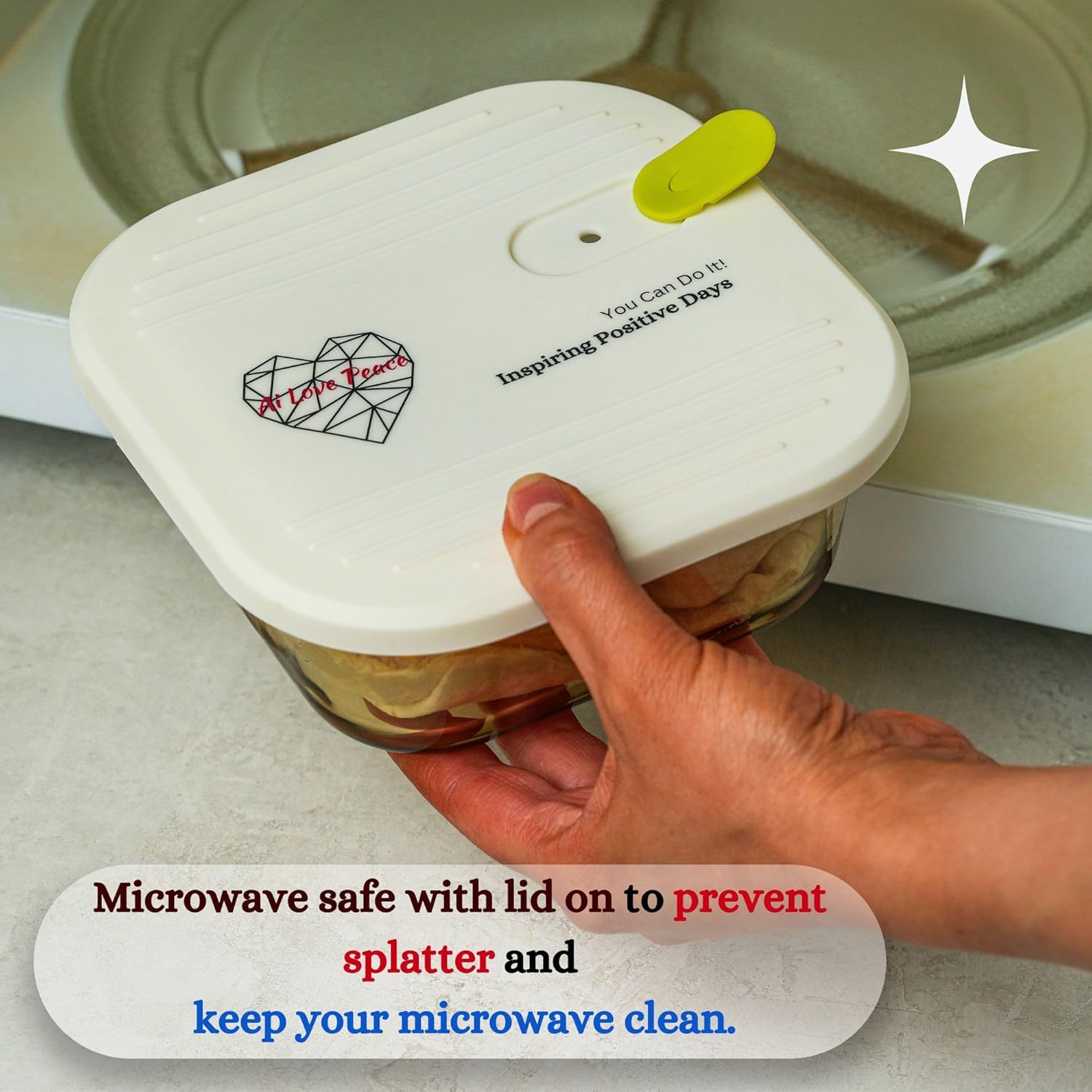 Ai Love Peace Soup Container with Dual Lids,26 oz Borosilicate Glass Lunch Box | Leakproof Lid+ Microwave &Safe Freezer Lid, Stackable,Glass Meal Prep Food Storage,Perfect for Work & Soup Lovers Gift.