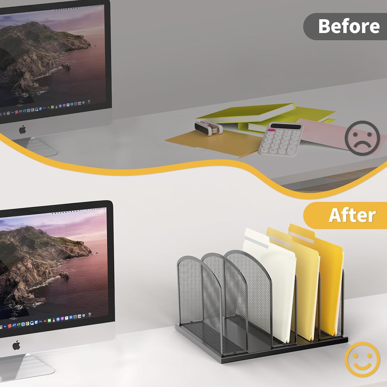 Large Size Desk File Organizer, Metal Mesh Vertical Desktop File Holder, 5-Section file organizer for Desk Home Office (1 Pack), Black