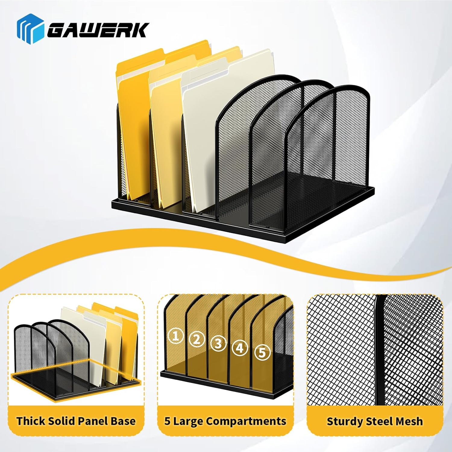 - 【Multiple uses】: Gawerk desktop organizer provides you with five file dividers for storing papers, notes, envelopes and other forms of documents, which can be widely used in your home, office area