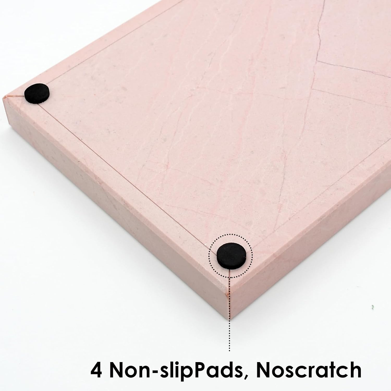 - Safe and Practical Design: The bathroom marble tray is fitted with anti-skid pads on the bottom, preventing slips and protecting your countertops from scratches. Our storage tray is durable, with a smooth and sturdy surface that's easy to clean. Simply wipe it clean with a dry cloth to maintain its natural shine.