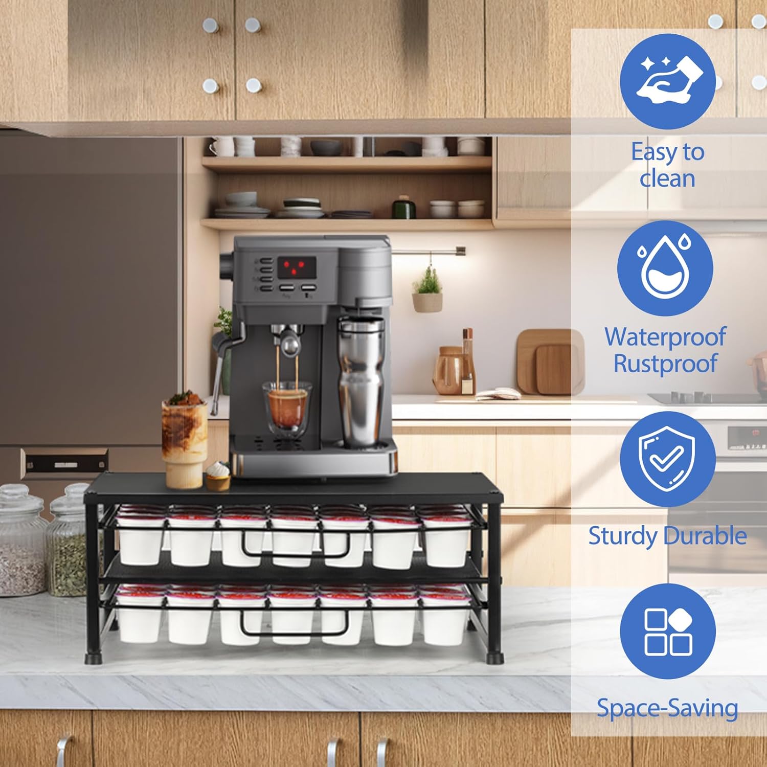 - 【High Quality】 Constructed with a sturdy metal frame, this coffee pod holder can support even the heaviest coffee makers. Equipped with four non-slip feet for tabletop protection and adjustable height, it ensures a stable, worry-free coffee experience