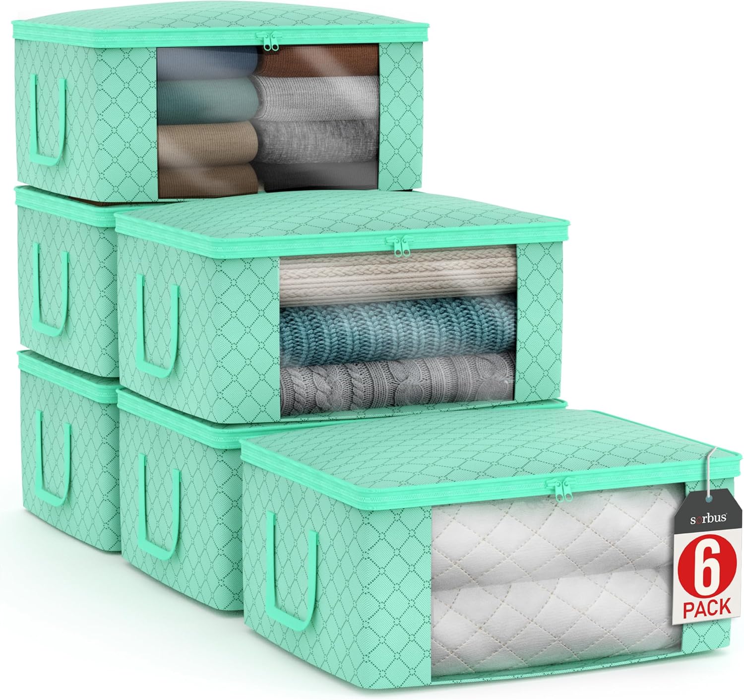Sorbus Medium Clothes Storage Bags - Foldable Blanket Storage Bins for Organizing Bedroom, Closet, Clothing, Comforter, Organization with Clear Window, Lids and Carry Handles - Set of 12