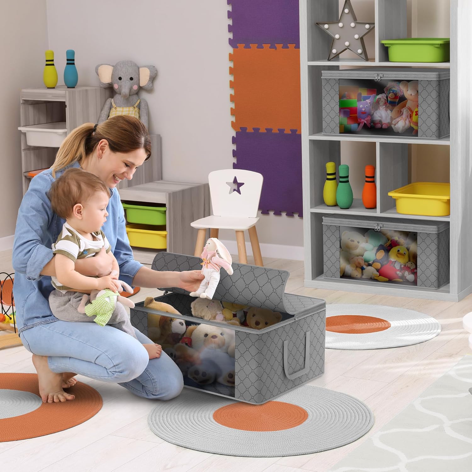- Lightweight & Portable: Carry handles make it easy to lift and stack, allowing for effortless transportation between shelves, closets, and other storage spaces. Ideal for packing and unpacking between seasons, traveling, moving, or as needed.