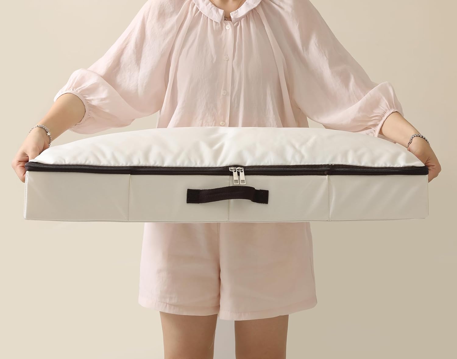 AMJ 4" Foldable Underbed Storage Closet Organizers and storage bins, Under Bed Garment Storage Bins, Folding & Washable, Soft Zip Lid, Beige