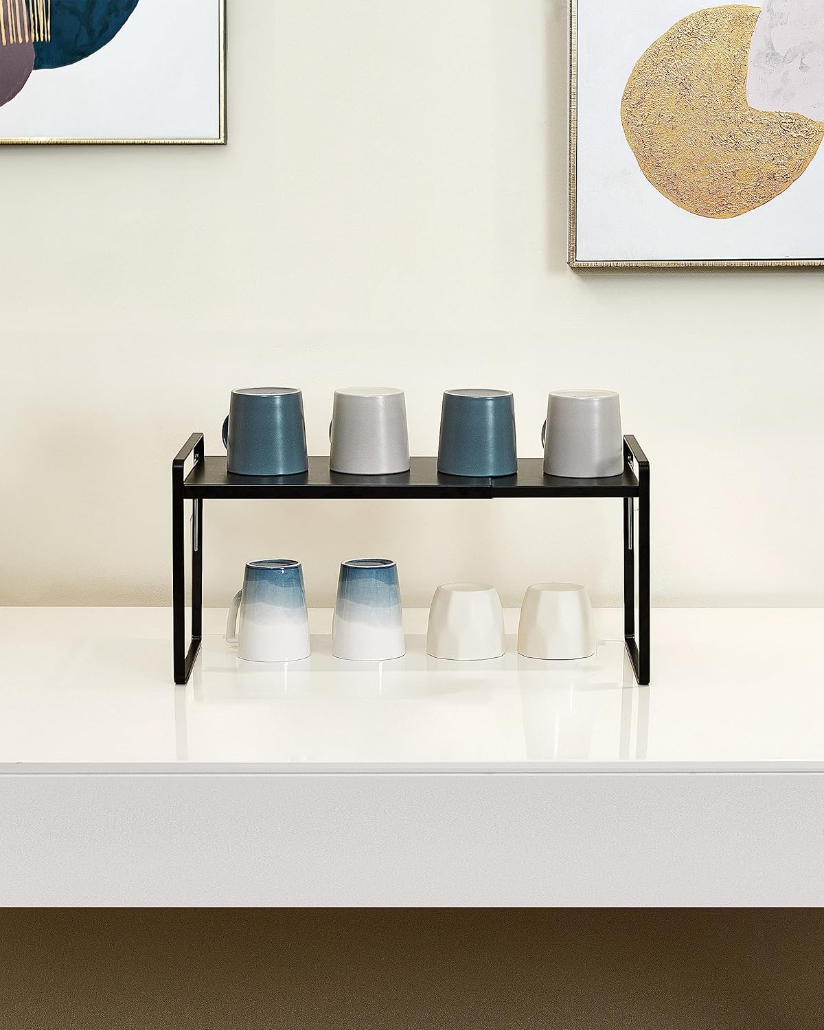 Nxconsu Cabinet Shelf Expandable Height Adjustable Shelf Organizer Riser for Kitchen Cabinet Pantry Cupboard Under Sink Countertop Organization Storage Space Saver Stackable Heavy Duty Metal Black XXL