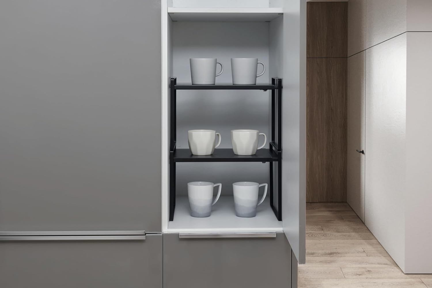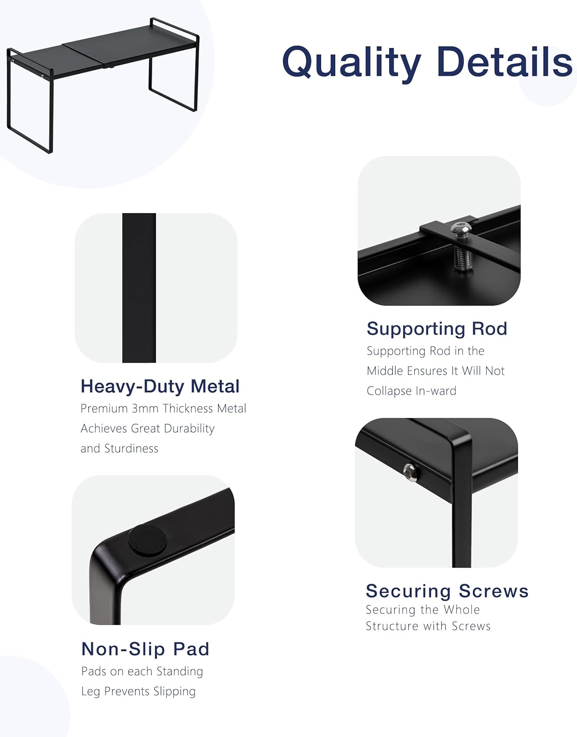 Nxconsu Expandable Cabinet Shelf Organizer Riser for Kitchen Pantry Cupboard Under Sink Countertop Home Storage Organization Rack Space Saver Freestanding Heavy Duty Nonslip Stackable Black X Large