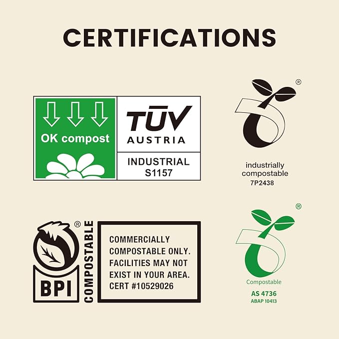 - Please note: Commercial composting facilities may not be available in all areas. We recommend verifying local availability to ensure compliance with composting requirements