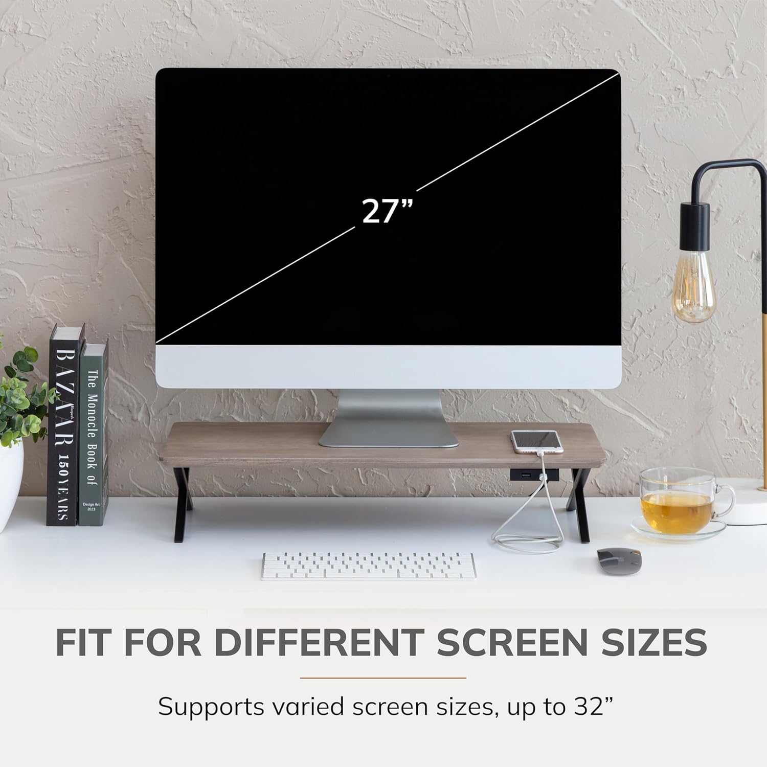 - Ergonomic Computer Riser: Prioritize comfort with this thoughtfully designed computer riser. As one of the best computer risers for desk monitors, the monitor stand wood construction offers an ideal viewing angle for maximum productivity.
