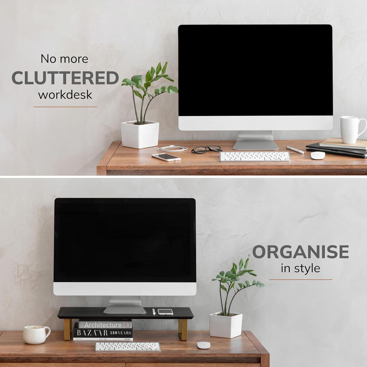- Elegant Desk Shelf: Enhance your workspace with this sophisticated desk shelf, designed as a desk riser to elevate your monitor. The monitor stand riser ensures ergonomic comfort while adding a refined touch to any office.