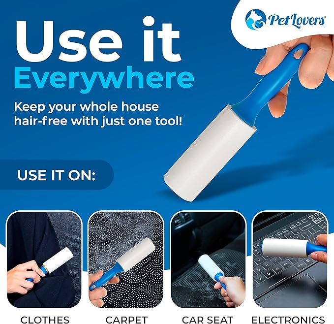 PetLovers Extra Sticky Lint Roller Mega Value Set for Pet Hair Removal, Dog and Cat Lint Remover (6 Pack Mini Refills)