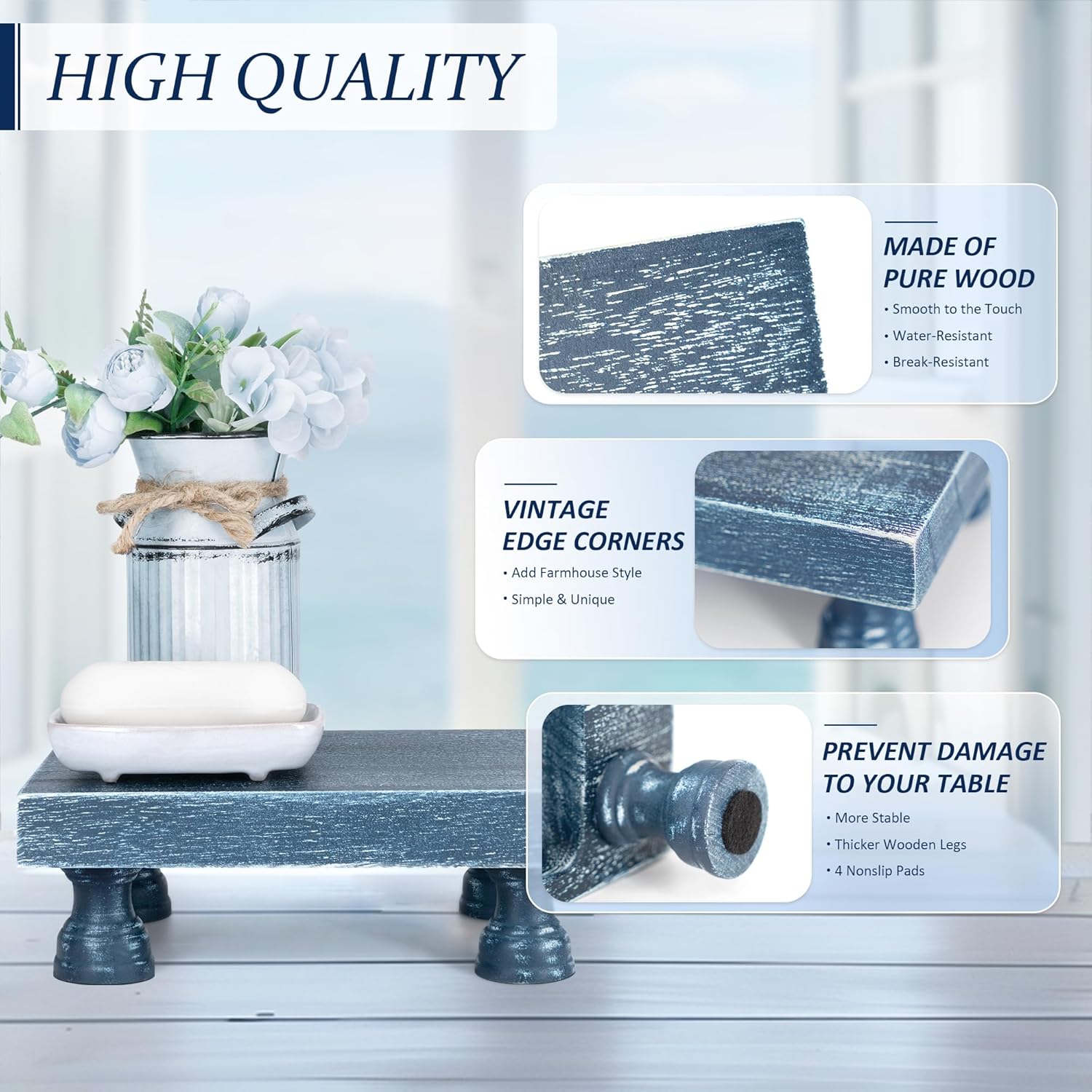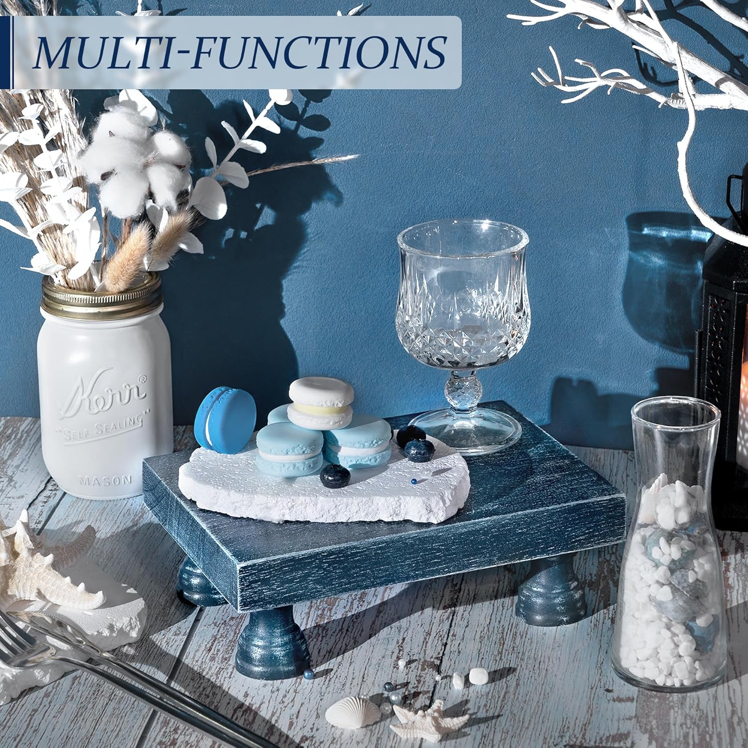 Decorative Display Risers for Home Decor - Wood Pedestal Stand for Kitchen Decor and Countertop Organizer - Ideal for Apartment Essentials (Blue)