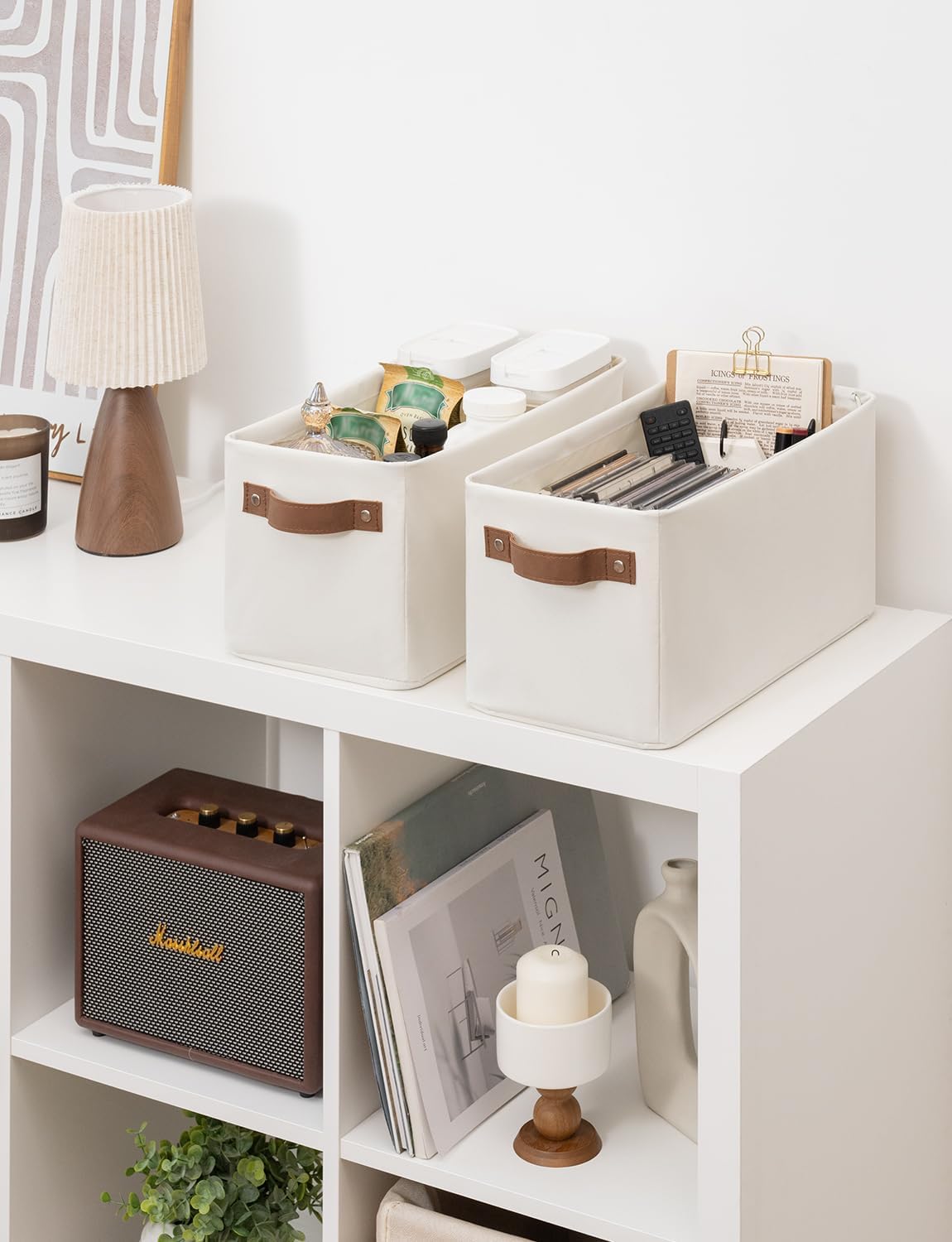 - Premium Materials: The storage basket is crafted from durable, thick fabric and features wide PU leather handles with rivet reinforcement, ensuring both strength and ease of movement to any desired location.