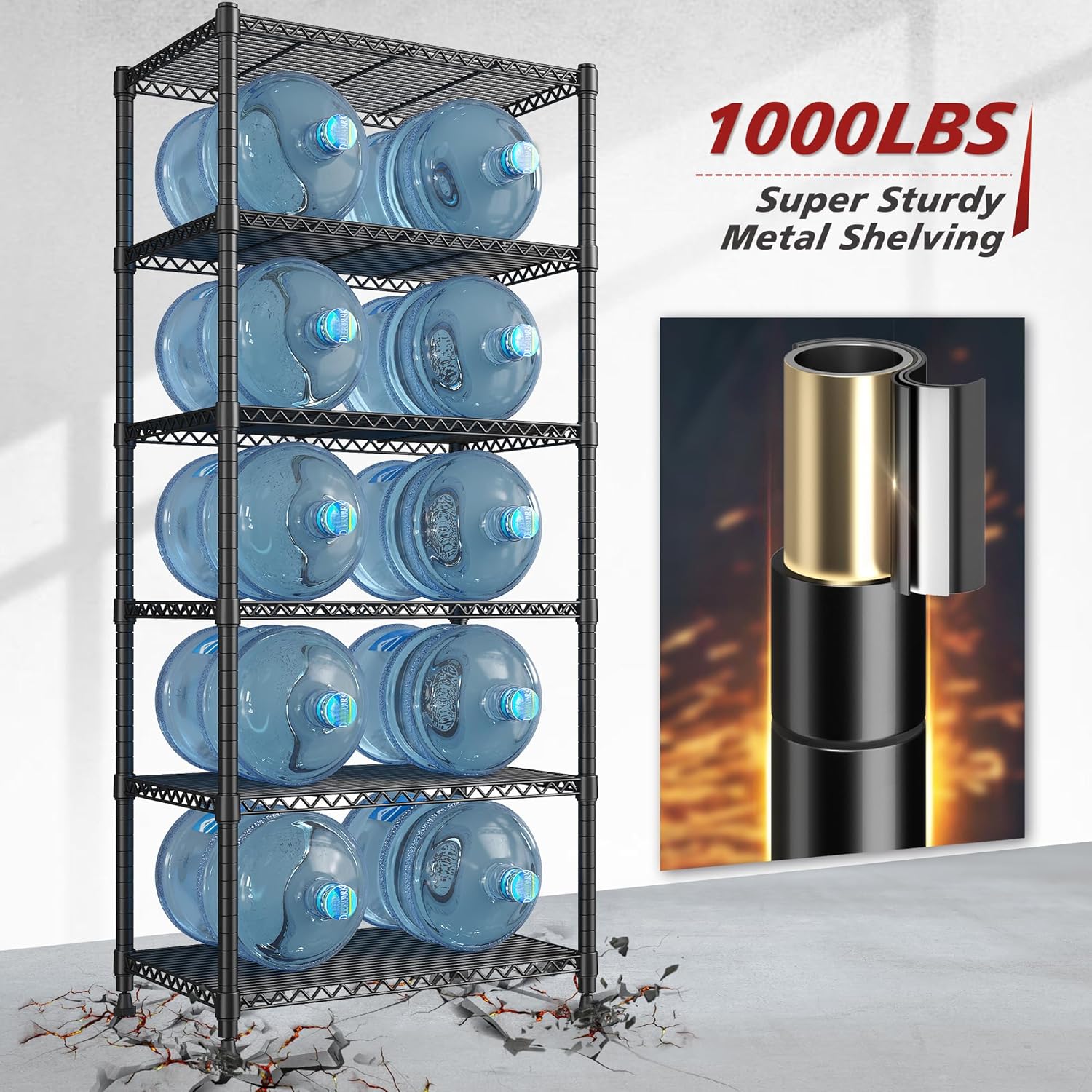 - 【Super sturdy heavy duty wire shelving loads 1000LBS 】The wire shelving rack are made of sturdy metal wire panels and metal rods. Each layer of wire board has dense grid lines, which can be more load-bearing and durable than ordinary shelf. The shelving unit is very strong and stable, and can hold up to 1000 LBS. Each layer of the metal shelves for storage can bear 167LBS.
