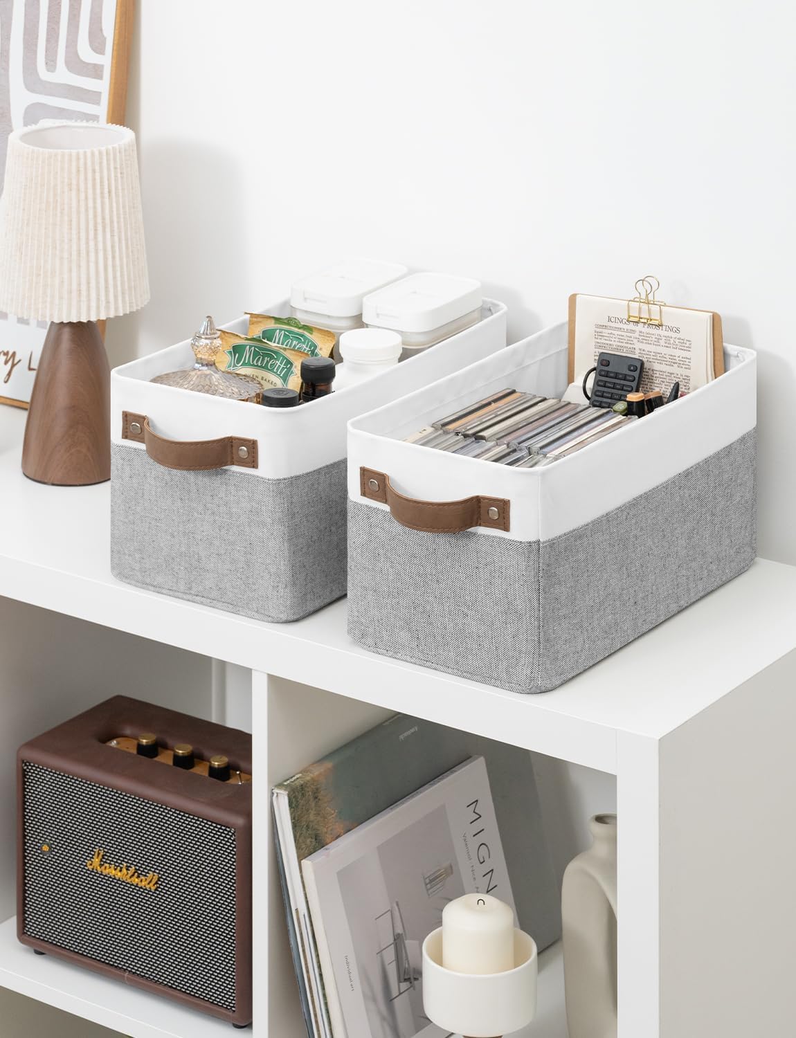 StorageWorks Narrow Storage Bins, Small Basket for Closet and Shelves, Rectangular Fabric Organizer with Handles, Toilet Paper Storage, Gray and White Stripes, 2-Pack