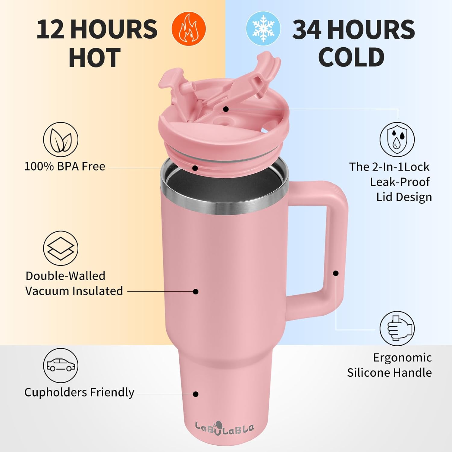 - Vacuum stainless steel tumbler: Made of premium 18/8 food grade metal, Durable double straw configuration makes it convenient for you to drink hot or cold. Wide opening for cleaning and adding ice, Spend less time to cleaning your tumbler and lids.