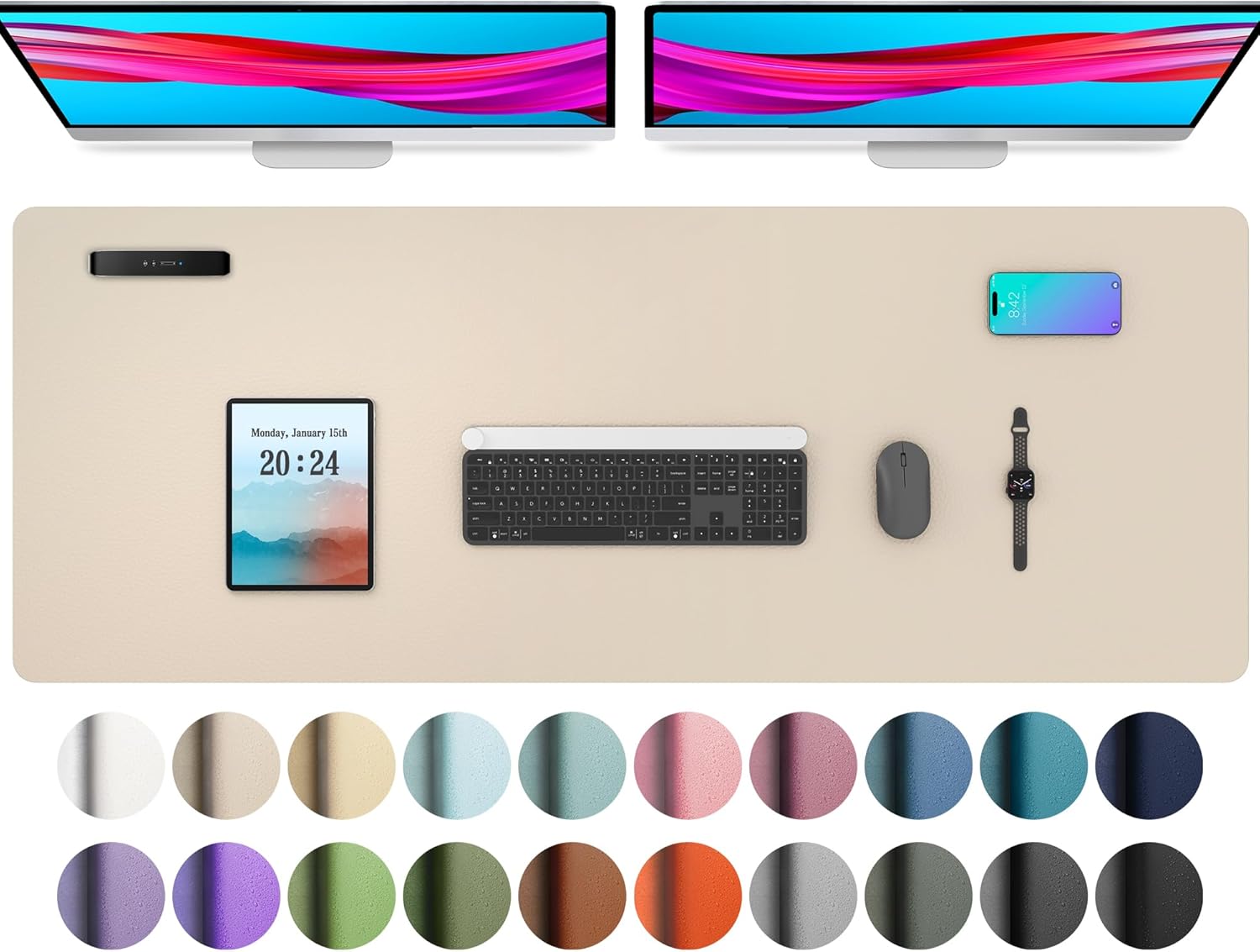 Aothia Leather Desk Pad Protector, Office Desk Mat, Large Mouse Pad, Non-Slip PU Leather Desk Blotter, Laptop Desk Pad, Waterproof Desk Writing Pad for Office and Home (48"x17", Beige)