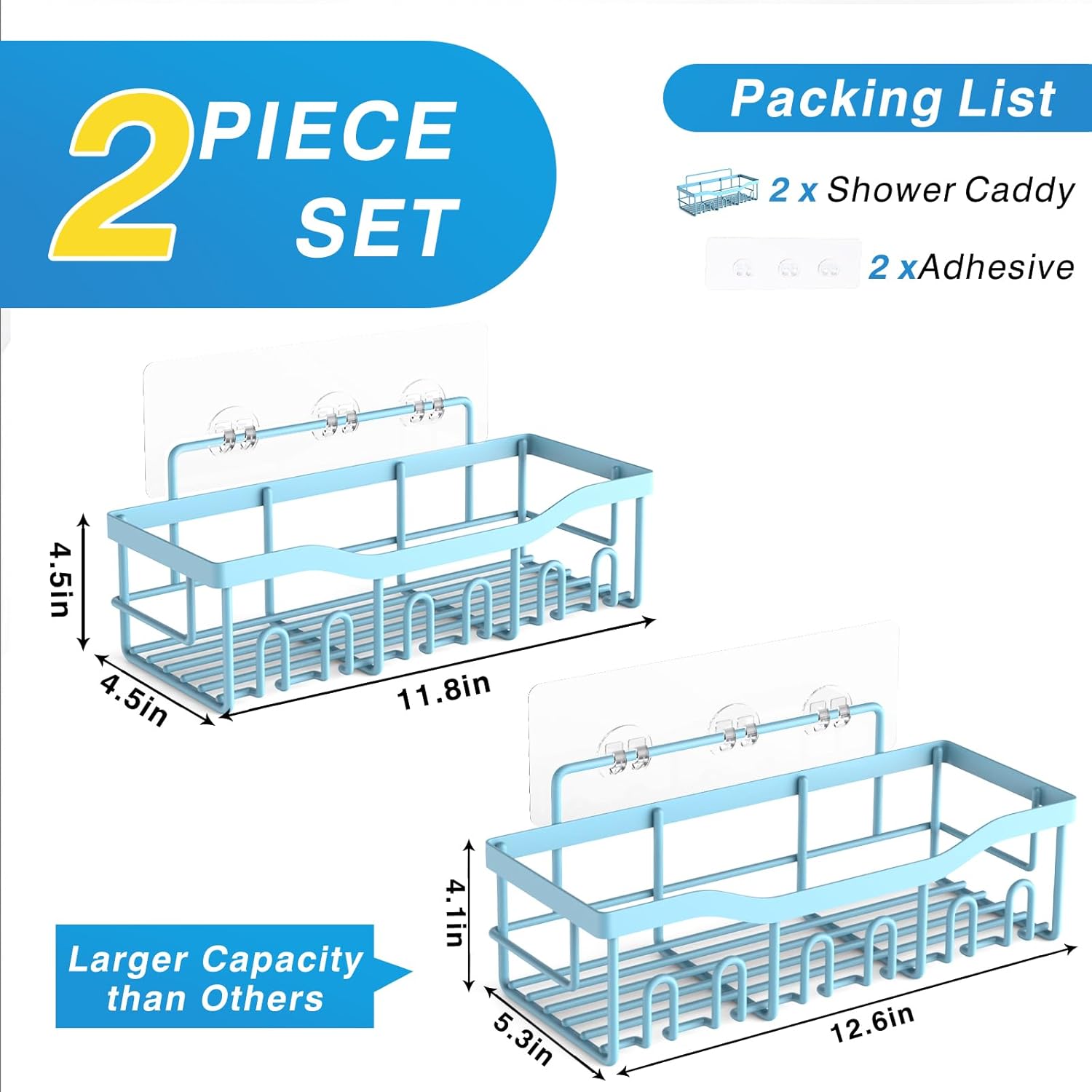 - 2 Hanging Shower Organizer Sets for Sufficient Bathroom Storage Space:The bathroom organizer comes with 2 pieces,including 2 big shower caddies,and 2 adhesives.Accommodate wash supplies or cooking seasonings easily with large capacities to make full use of space and facilitate your life;ideal for the bathroom organization/home decor/kitchen storage/laundry organization and storage/seasoning organizer/spice rack organizer/toilet/rv/apartment.