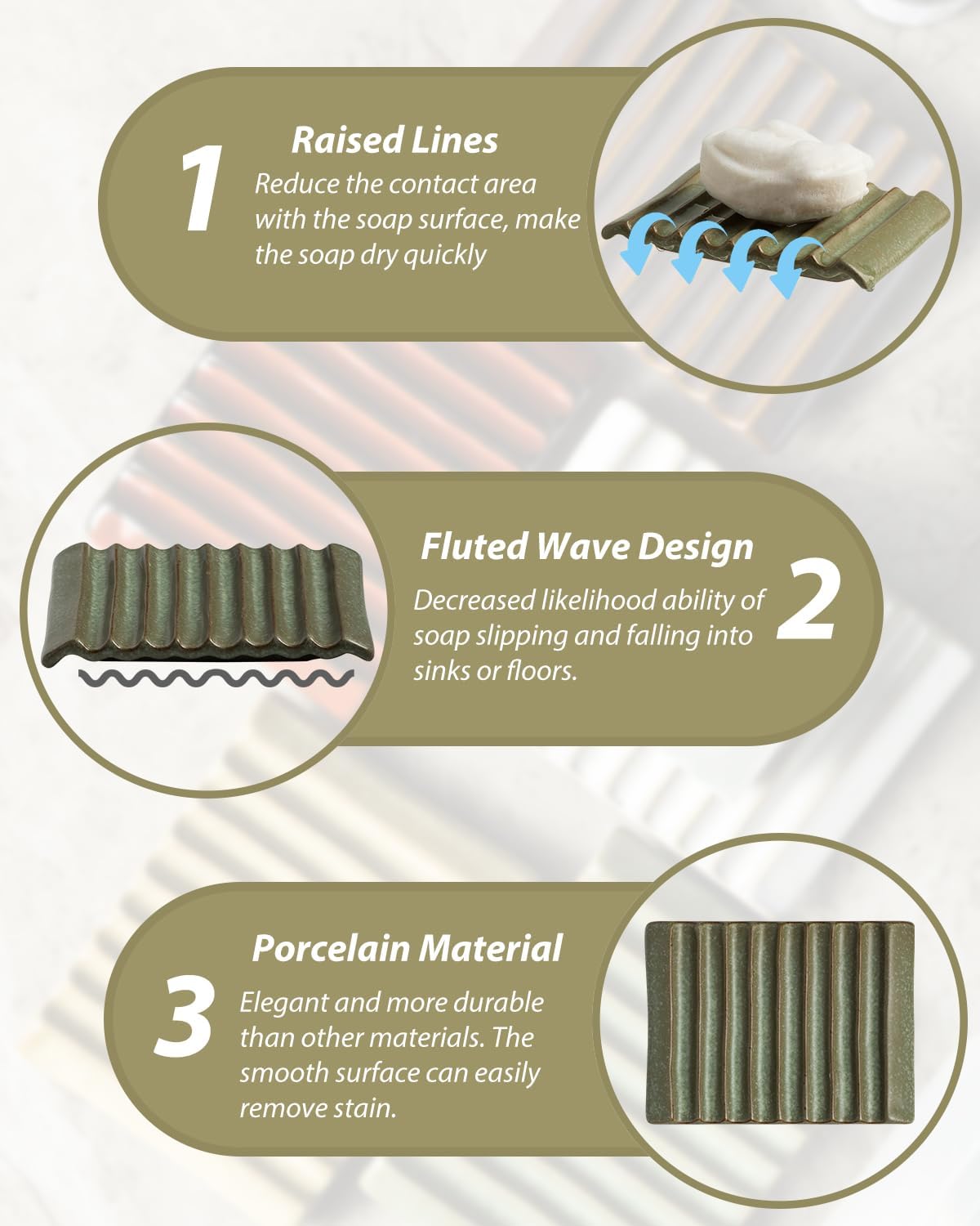 - Modern: With its minimalist design and unique color, our ceramic soap dish set complements any décor. Add a touch of sophistication to your bathroom or kitchen with these soap accessories