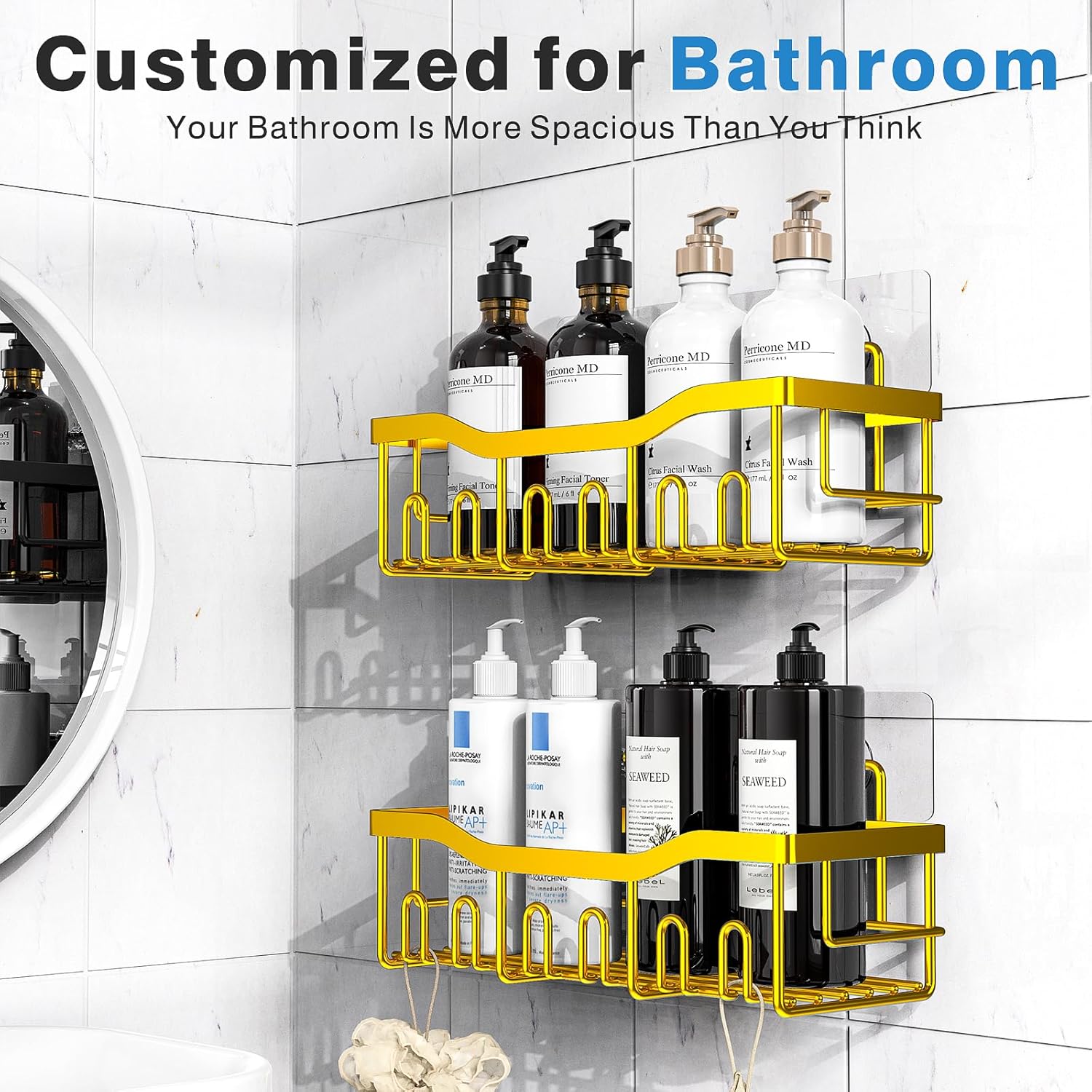 - Efficient Storage Solution for Kitchen/Bathroom:Perfect for bathroom decor and home essentials.It's a perfect choice for keeping the bathroom or kitchen items well organized and within easy reach,which is widely applied in the kitchen or bathroom.These bathroom shelves feature rounded edges to ensure they won't scratch your skin.