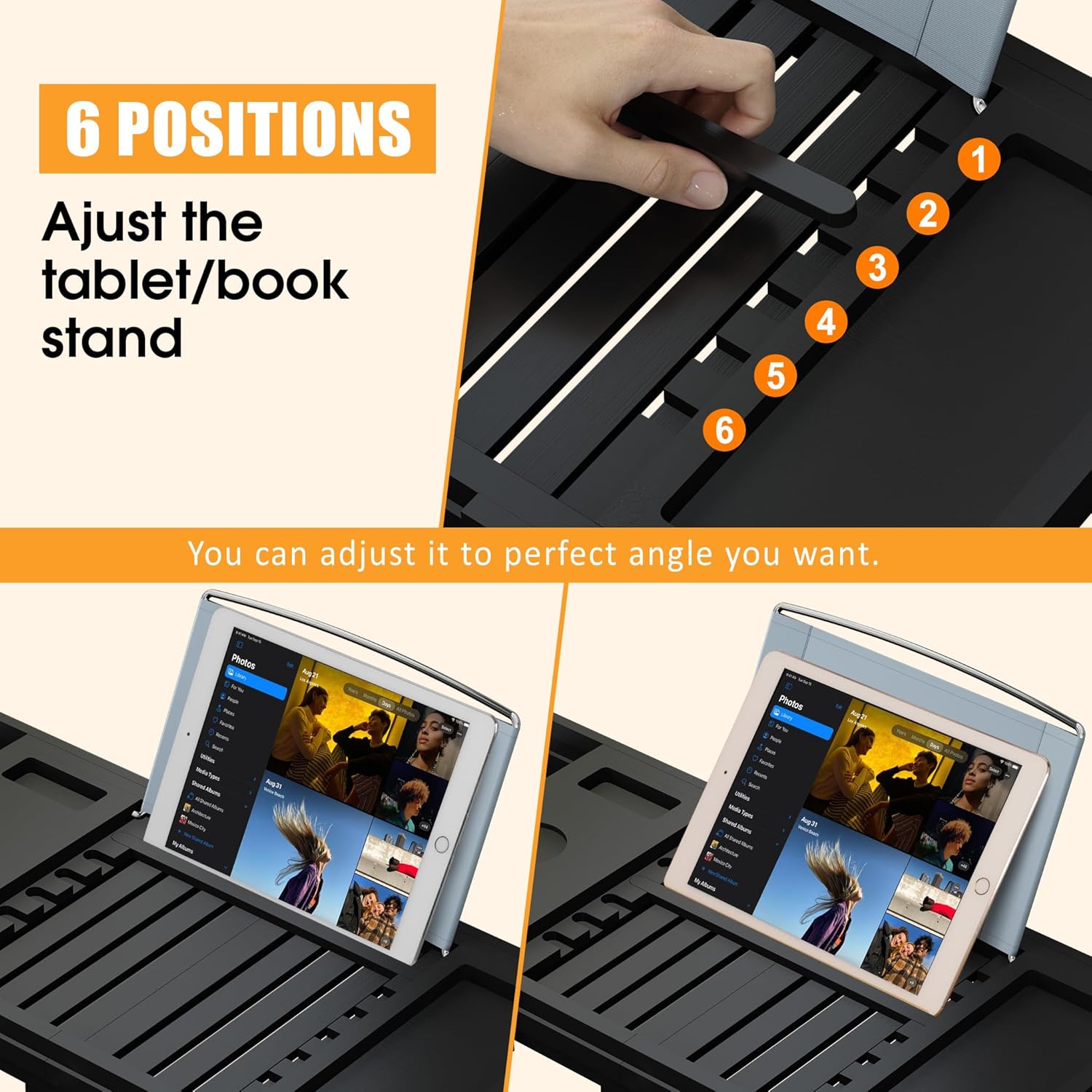 - 🛀🏼MULTIFUNCTIONAL COMPONENT - It features 6 reading angles for ideal viewing experience of your book or Ipad,the wine glass holder,cup holder, phone slot and two side-trays are designed for your bath time. AWESOME GIFT CHOICE for wedding birthday christmas etc.