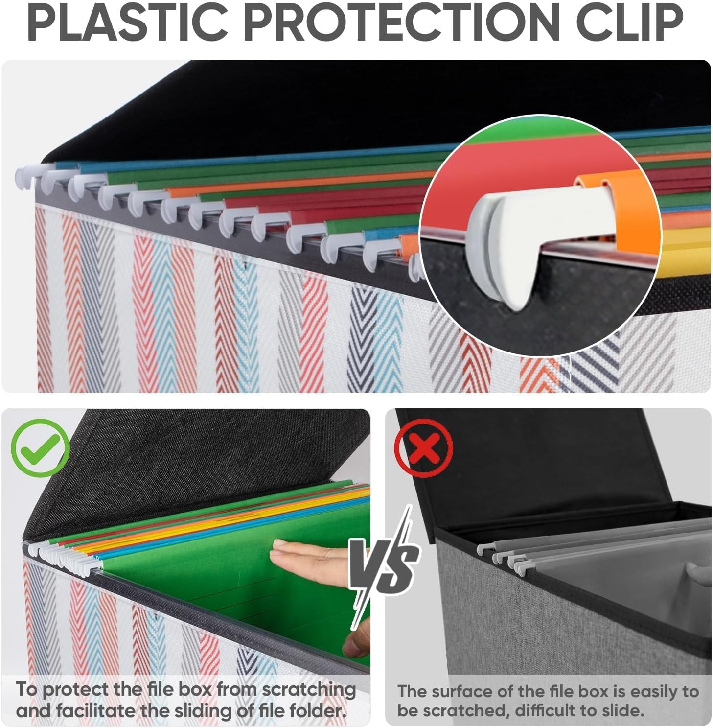 BALEINE File Organizer Box with Lid, Collapsible File Folder Organizer with Plastic Slide, Hanging File Folder Box for Office Document Storage (1 Pack, Color Stripe)