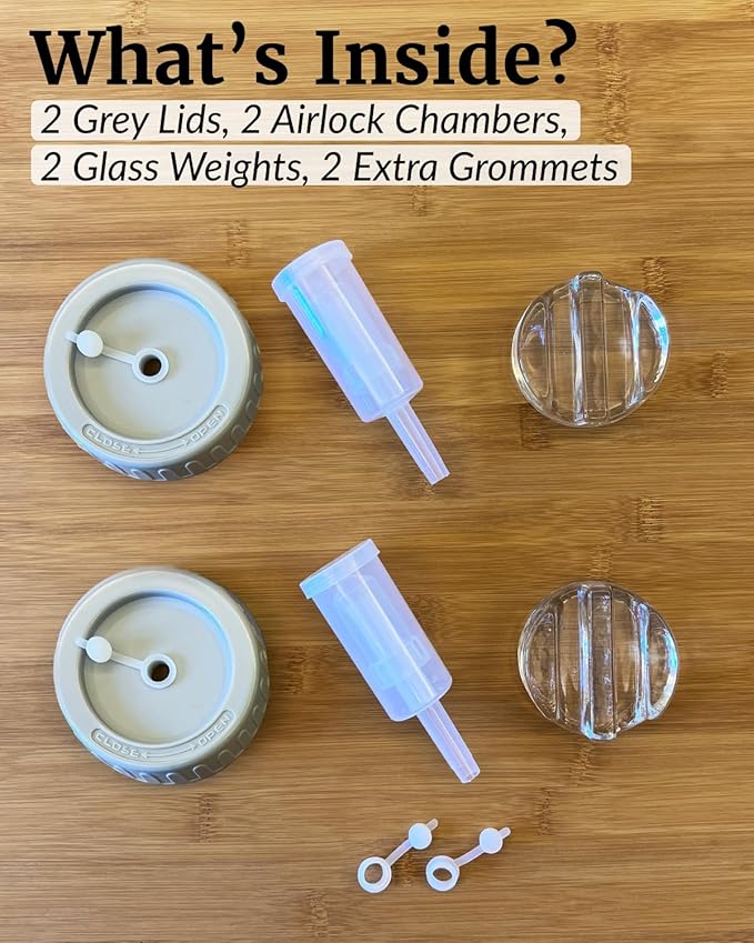 - THE KEY TO GREAT FERMENTATION - Our 2-pack of weights and lids will keep your fermenting vegetables submerged to prevent spoiling caused by excess oxygen. The lids help maintain the anaerobic environment suitable for fermentation