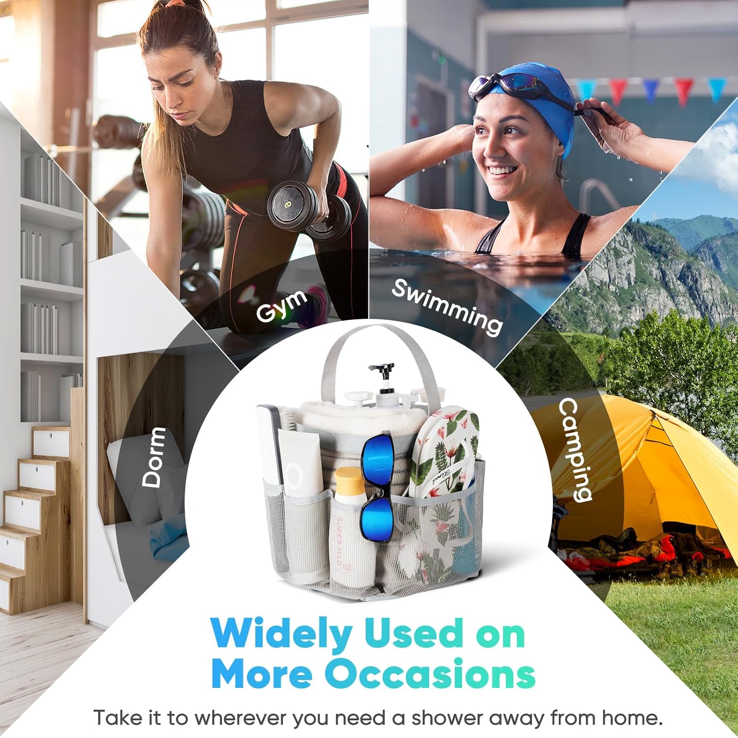 - Quick Dry, Easy Clean:Quickly get access to the needed item stored in the portable shower caddy. Breathable mesh fabric is the perfect choice for shower bags, which drains water away easily and dries up quickly. Wash and dry the shower bag at any dry and ventilated place to prolong the lifespan.