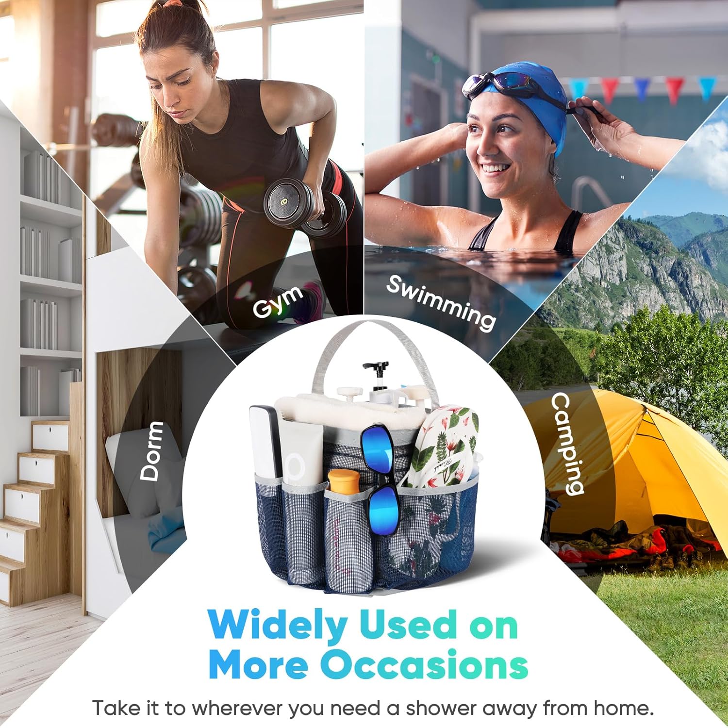 - Quick Dry, Easy Clean:Quickly get access to the needed item stored in the portable shower caddy. Breathable mesh fabric is the perfect choice for shower bags, which drains water away easily and dries up quickly. Wash and dry the shower bag at any dry and ventilated place to prolong the lifespan.