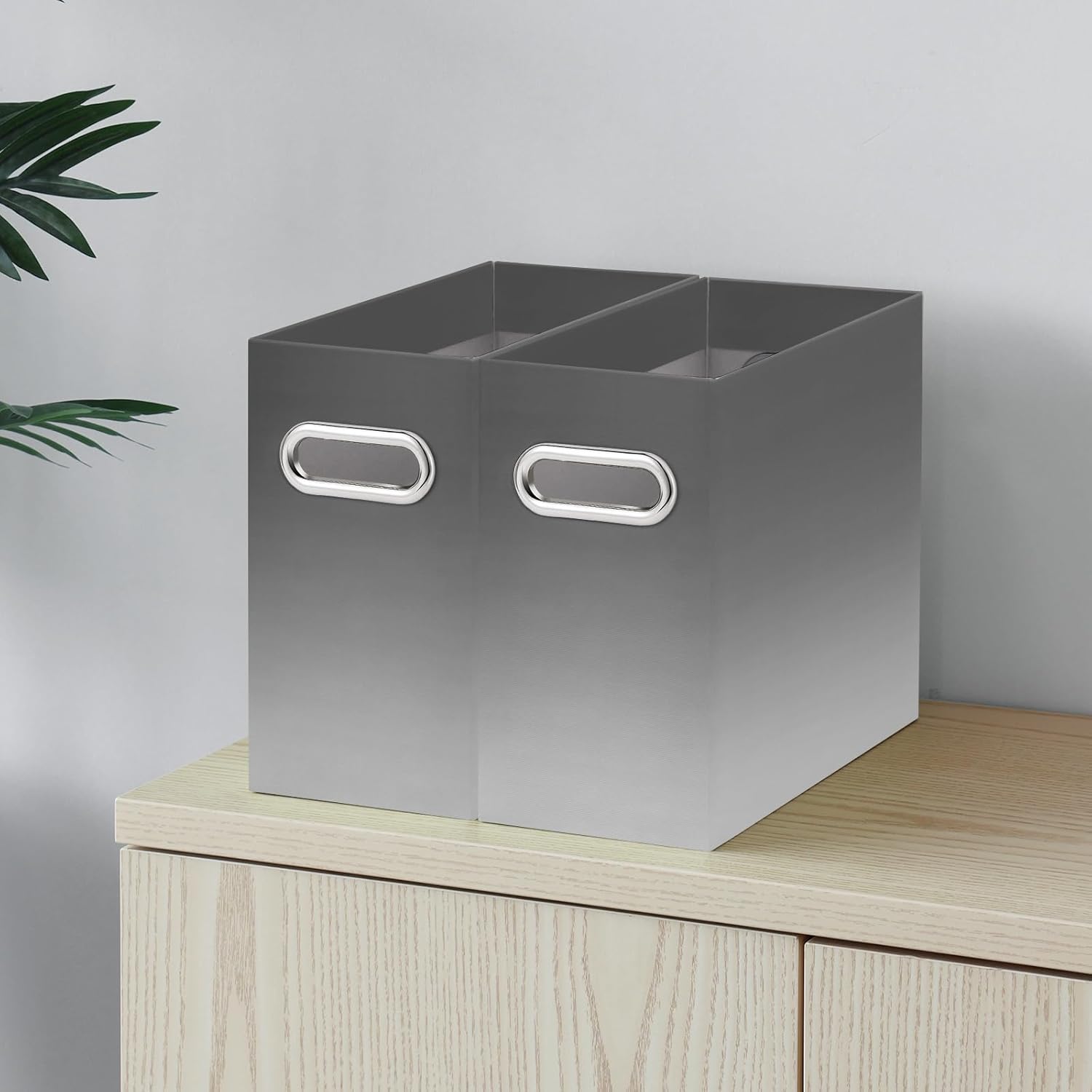 Oterri Cardboard File Organizer Box for Hanging File Folders Letter Size,File Box for Computer Desk,File Cabinet,Working Home,Office,Classroom (Gradient Light gray, Letter Size - 2 Packs)