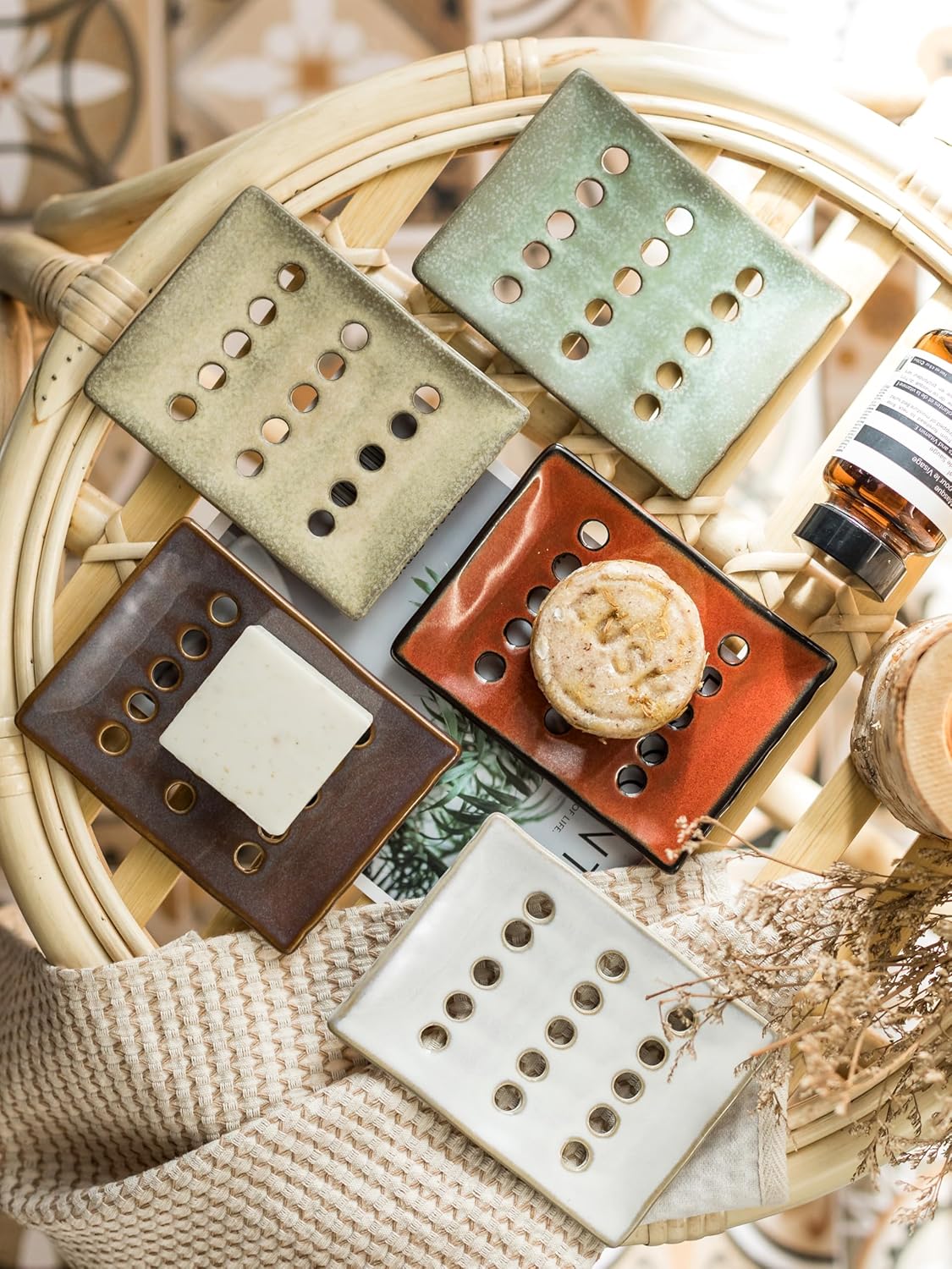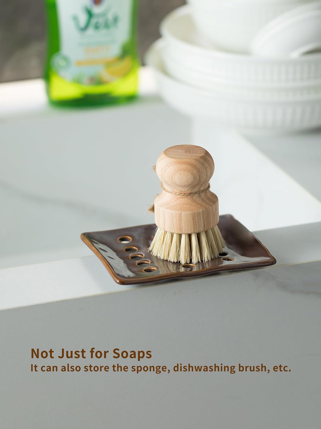 - 【Versatile Soap Tray】Made from ceramic, this soap holder comfortably fits various soap sizes, sponges, and dishwashing brushes without taking up too much space. The shower soap holder is also very useful for organizing your accessories, watches, and other delicate items.