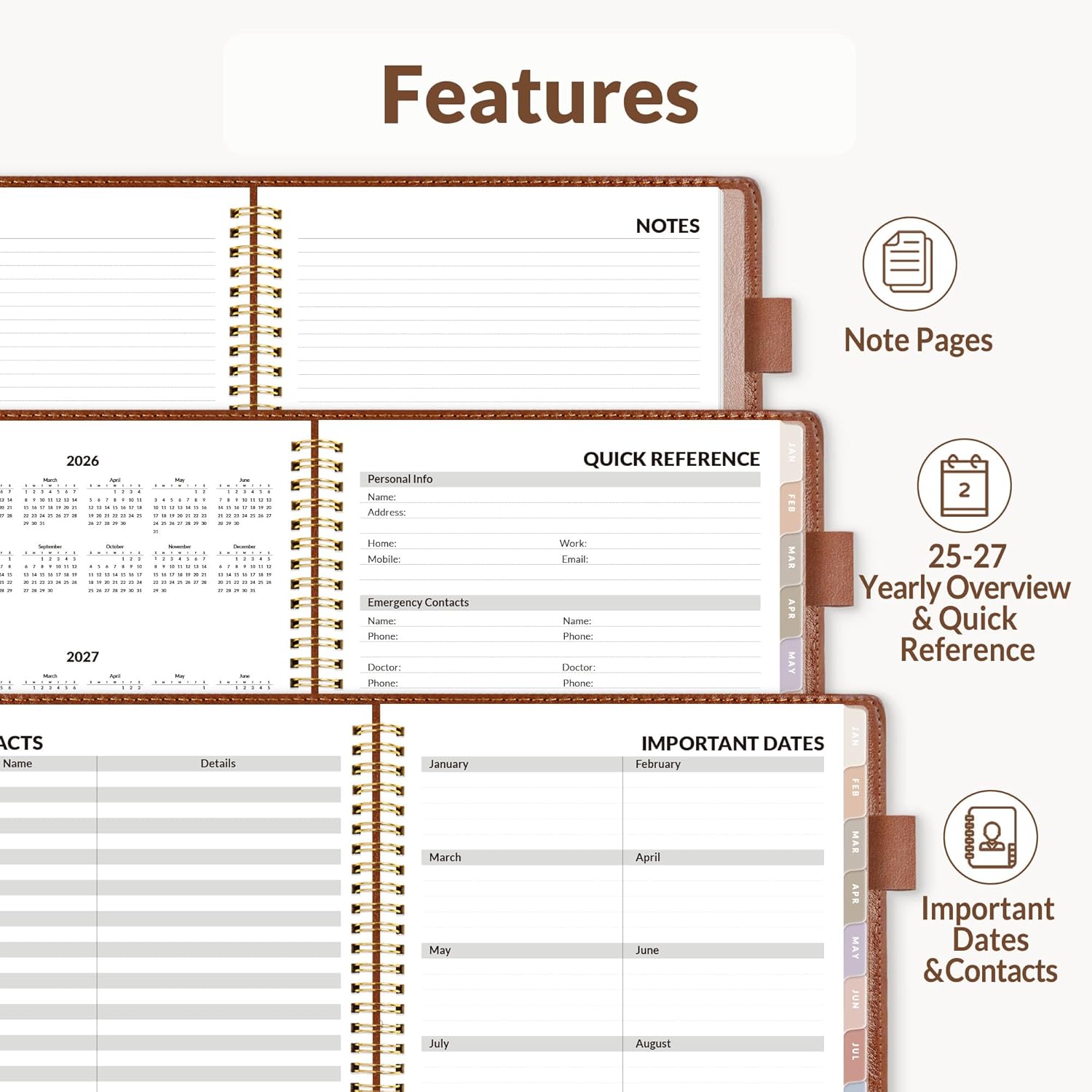 - Additional Features - The weekly planner includes 2026-2028 calendars, year schedule for full year 2026, holiday lists, contact pages, notes pages, important dates, and US time zone map. Beautiful monthly tabs simplify navigation and add a stylish, playful element to the planner's aesthetic.