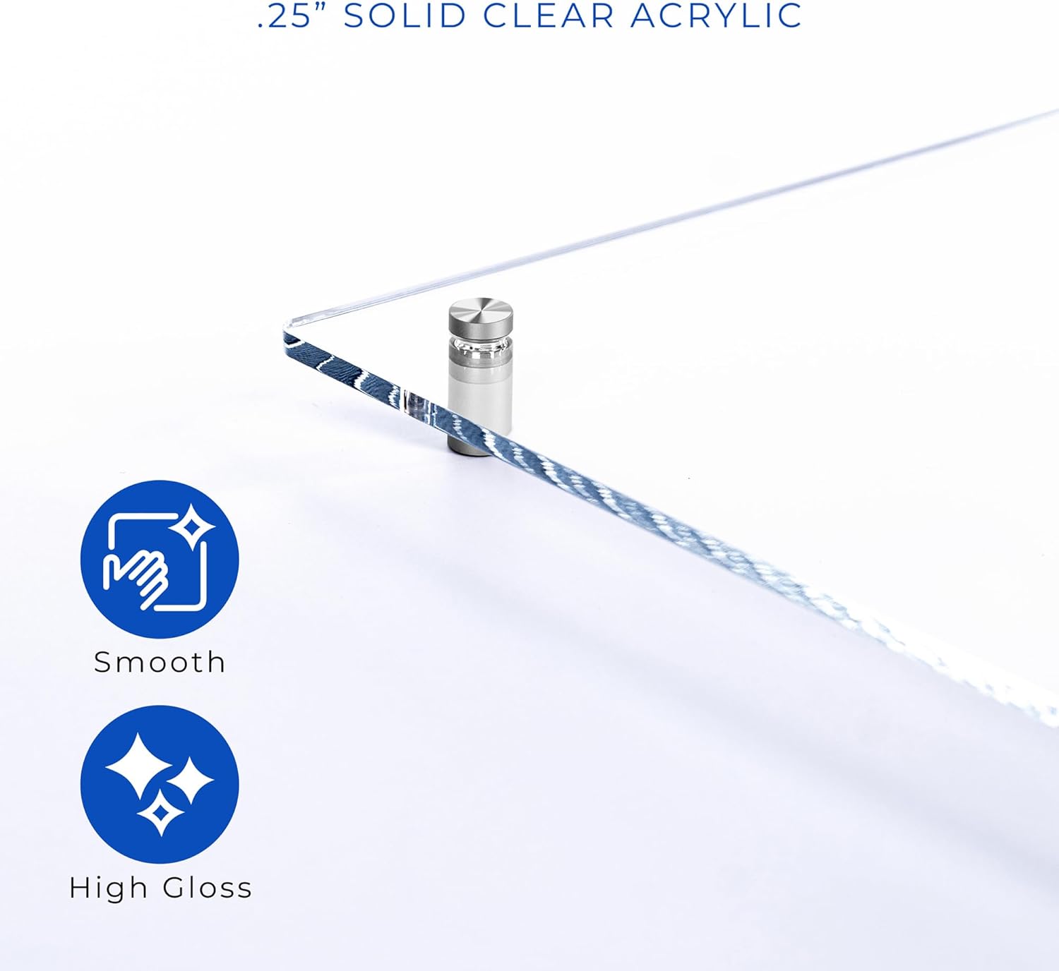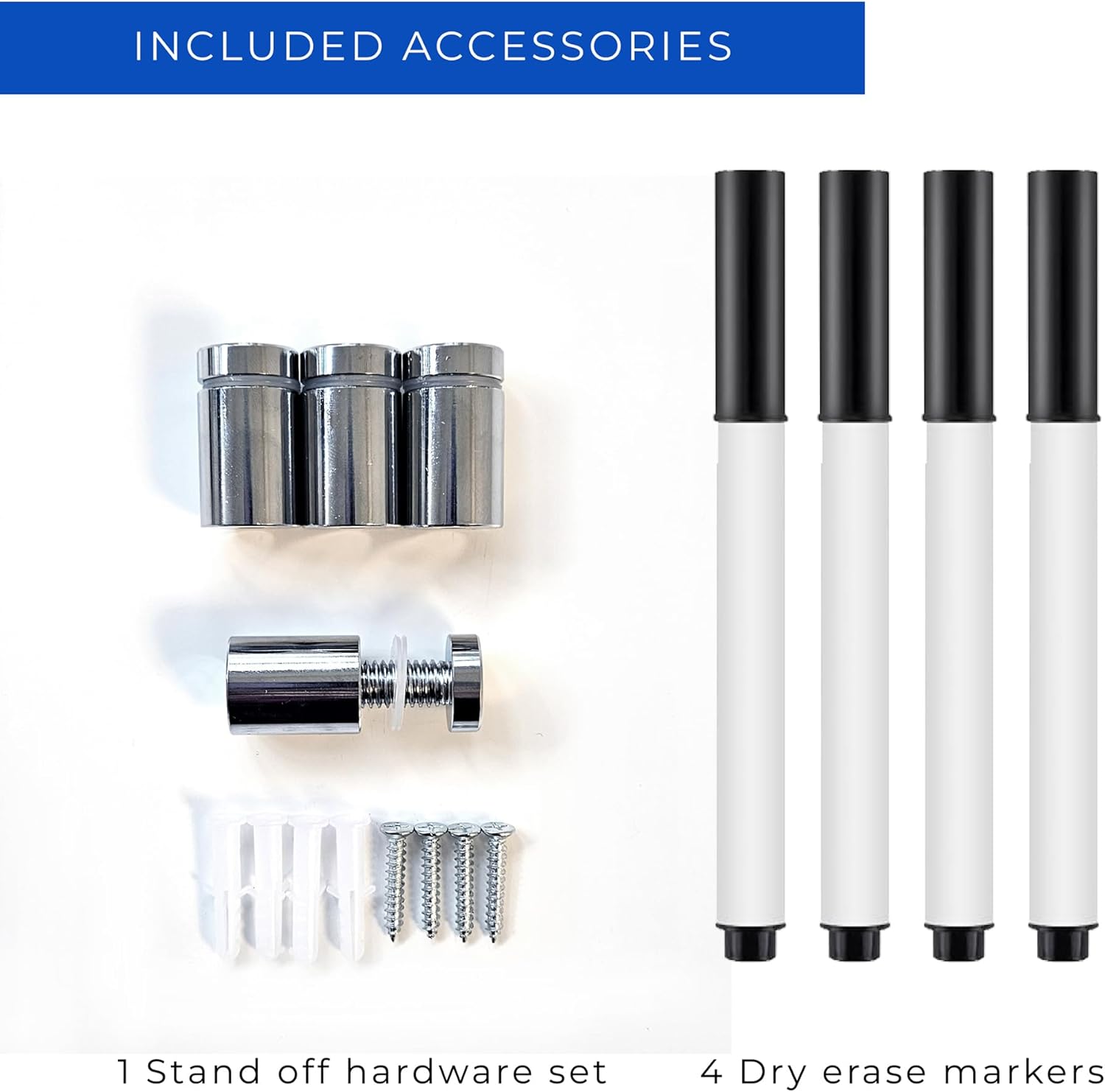 21x28 Dry Erase Board for Wall - with .25 Clear Acrylic and Chrome Stand Off Finish - Perfect Whiteboard for Office, Home, Classroom - Durable and Stylish .25 Clear Acrylic Dry Erase Board