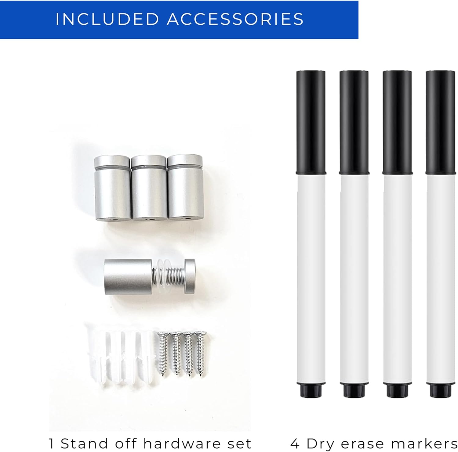- Stylish and Customizable: Available in three colors (black, white, and clear) and five stand-off finishes, this whiteboard complements any decor, adding a touch of elegance and professionalism to your space.