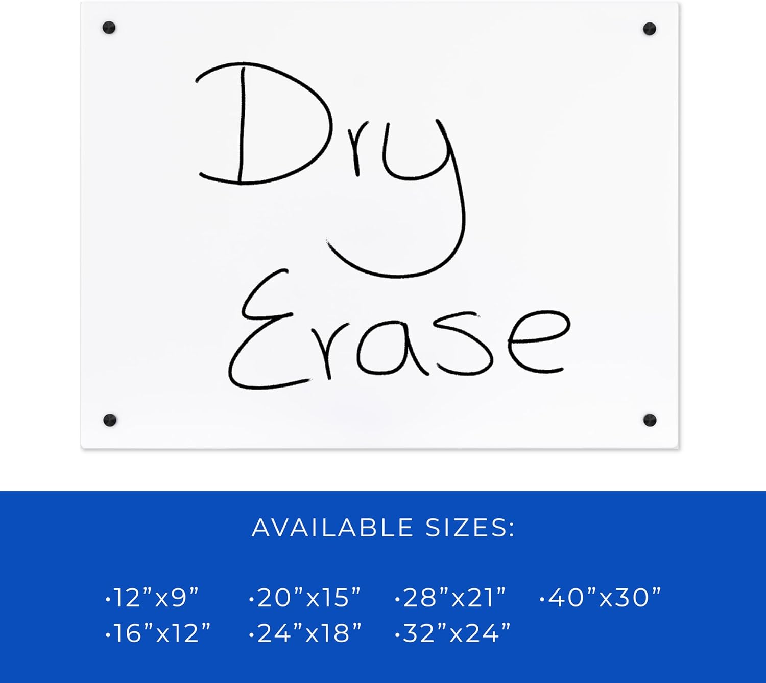 12x16 Dry Erase Board for Wall - with .25 White Acrylic and Black Stand Off Finish - Perfect Whiteboard for Office, Home, Classroom - Durable and Stylish .25 White Acrylic Dry Erase Board