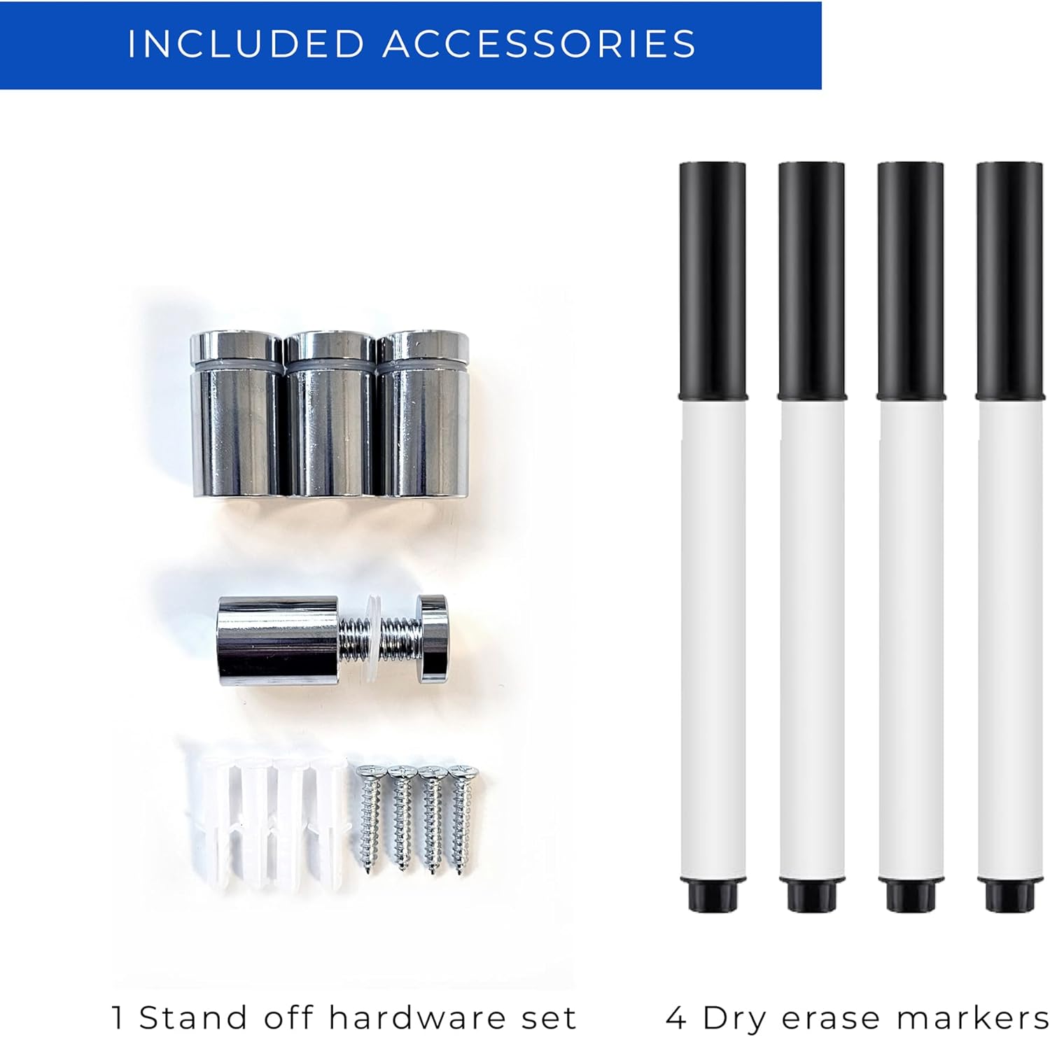 - Stylish and Customizable: Available in three colors (black, white, and clear) and five stand-off finishes, this whiteboard complements any decor, adding a touch of elegance and professionalism to your space.