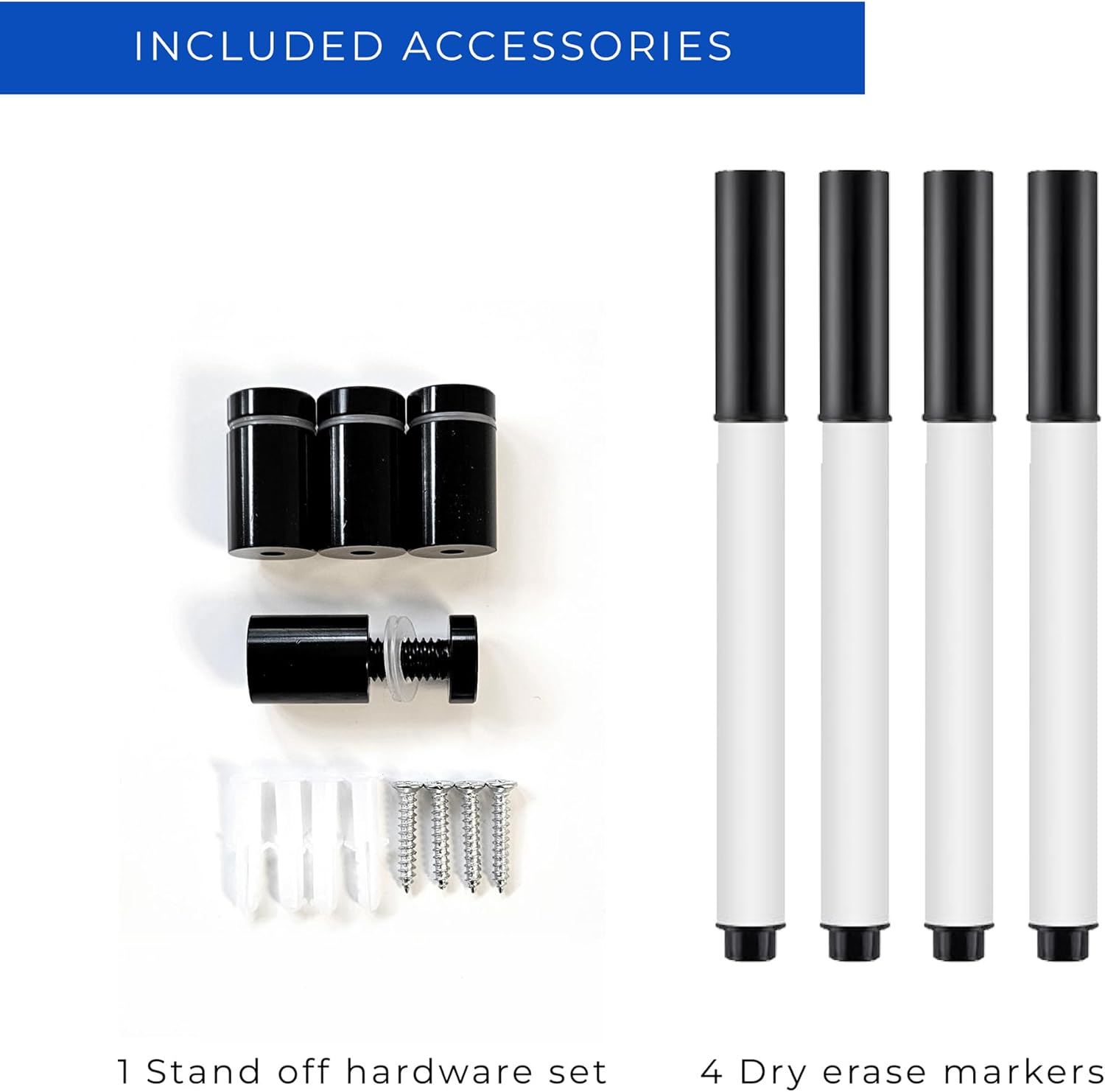- Stylish and Customizable: Available in three colors (black, white, and clear) and five stand-off finishes, this whiteboard complements any decor, adding a touch of elegance and professionalism to your space.