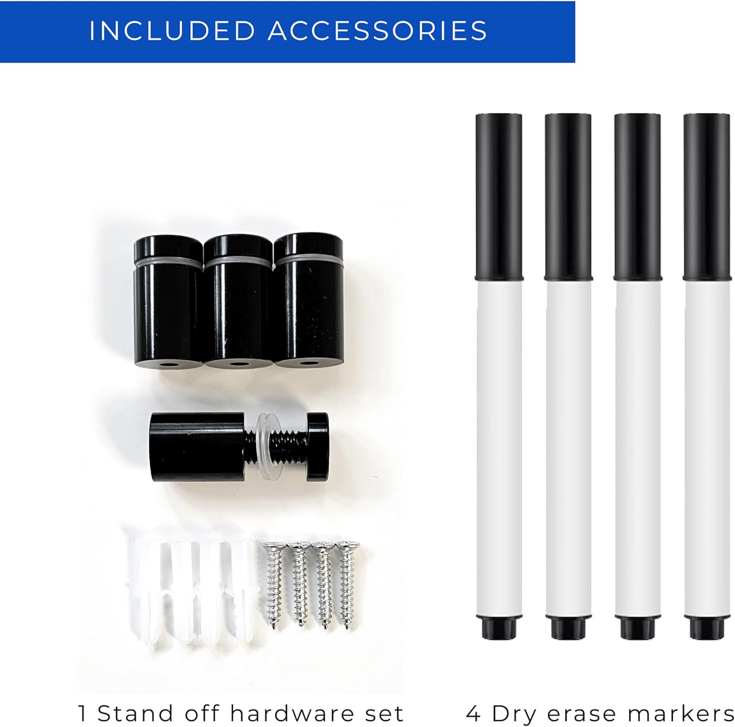 9x12 Dry Erase Board for Wall - with .25 Clear Acrylic and Black Stand Off Finish - Perfect Whiteboard for Office, Home, Classroom - Durable and Stylish .25 Clear Acrylic Dry Erase Board