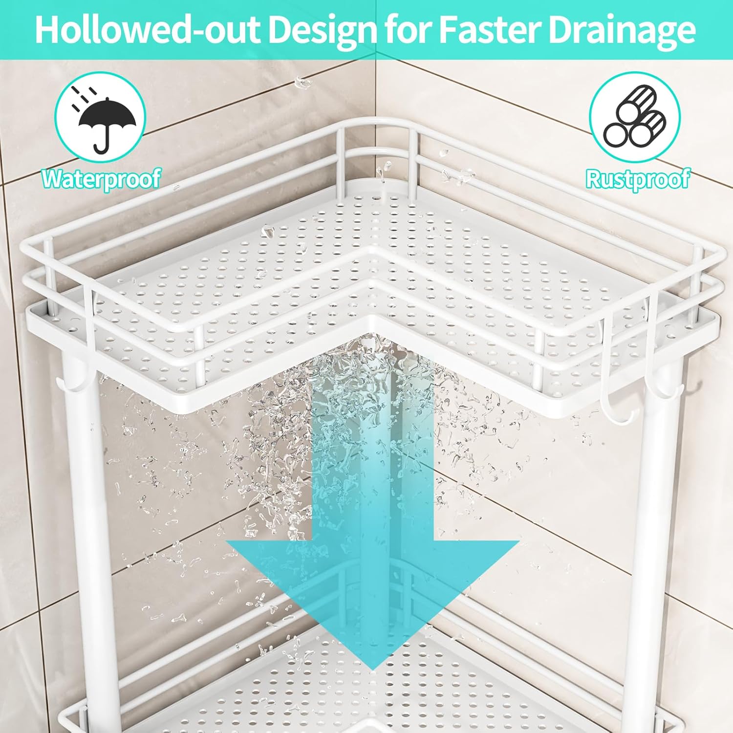 - [Waterproof and Rustproof Shower Tower]: Made of high quality stainless steel, the shower caddy corner is sturdy, durable as well as waterproof and rustproof. The drainage holes of the shower shelf are designed to drain quickly to keep it dry