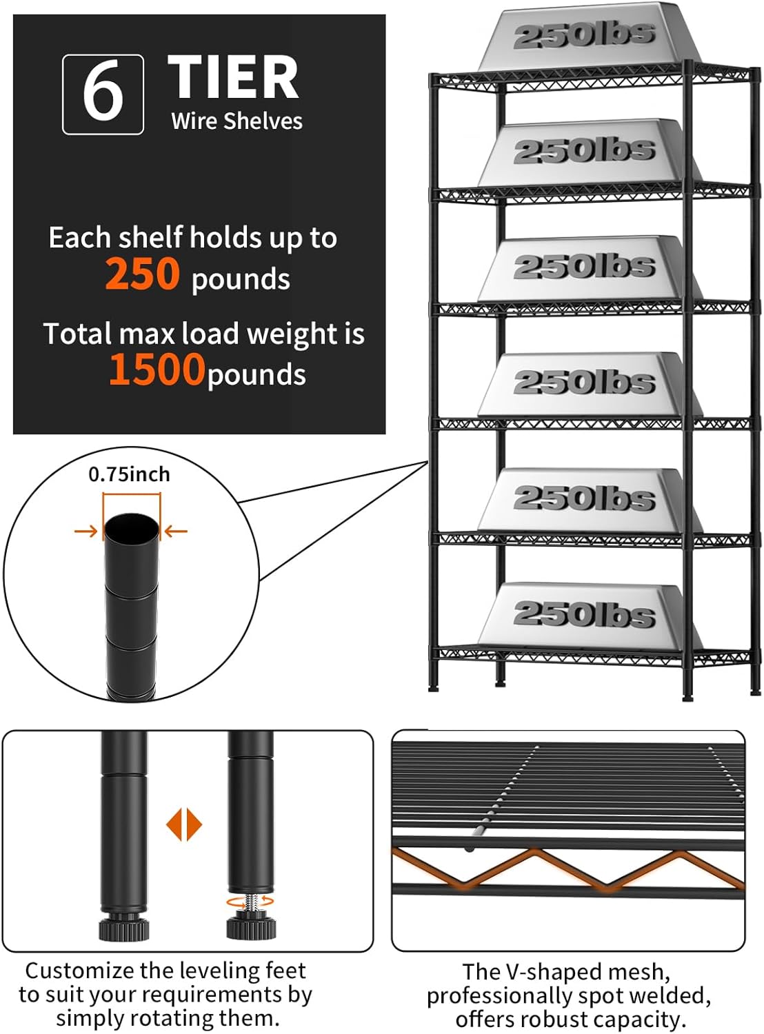 - The shelf is specially coated for protecting it from any water, rust or corrosion. Not worry to place the shelving unit in your kitchen or bathroom, easy to wipe down clean