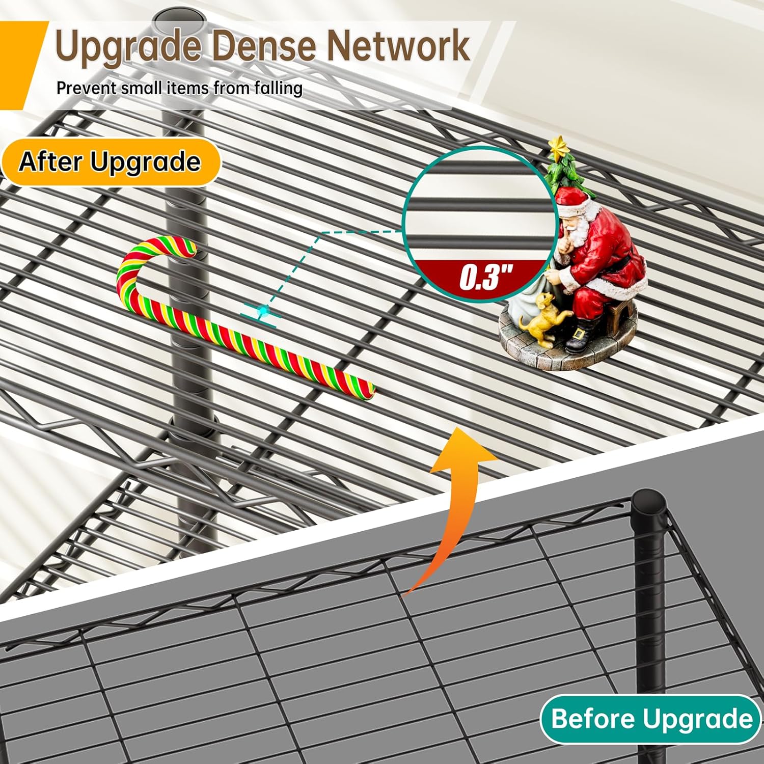 - The shelf is specially coated for protecting it from any water, rust or corrosion. Not worry to place the shelving unit in your kitchen or bathroom, easy to wipe down clean