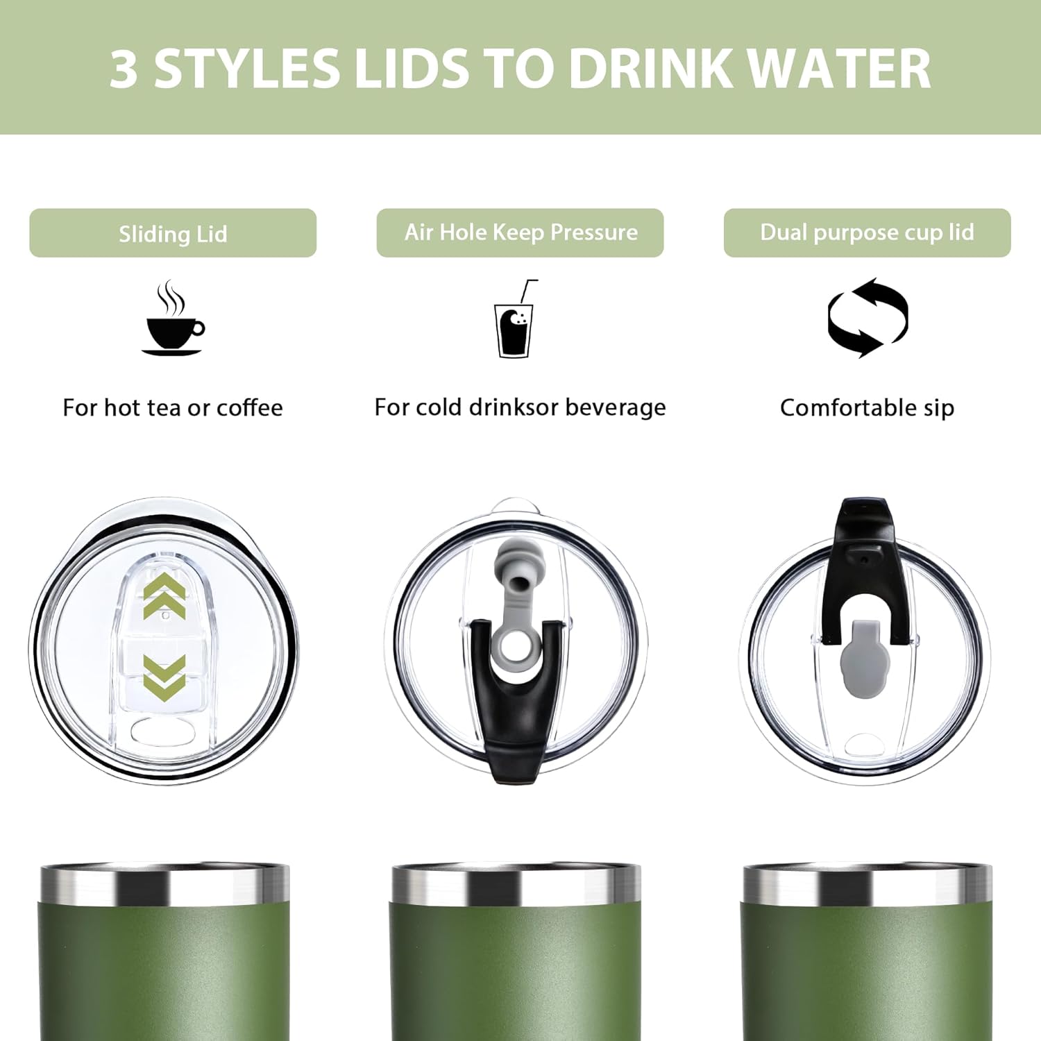 - 【TWO DIFFERENT DRINKING METHODS】 The HYDROWION 20oz water tumbler comes with two BPA-free lids. The straw dual-purpose lid allows you to take small sips of coffee or open the straw hole to drink juice through a straw. The slide lid is easy to use, allowing you to drink quickly.