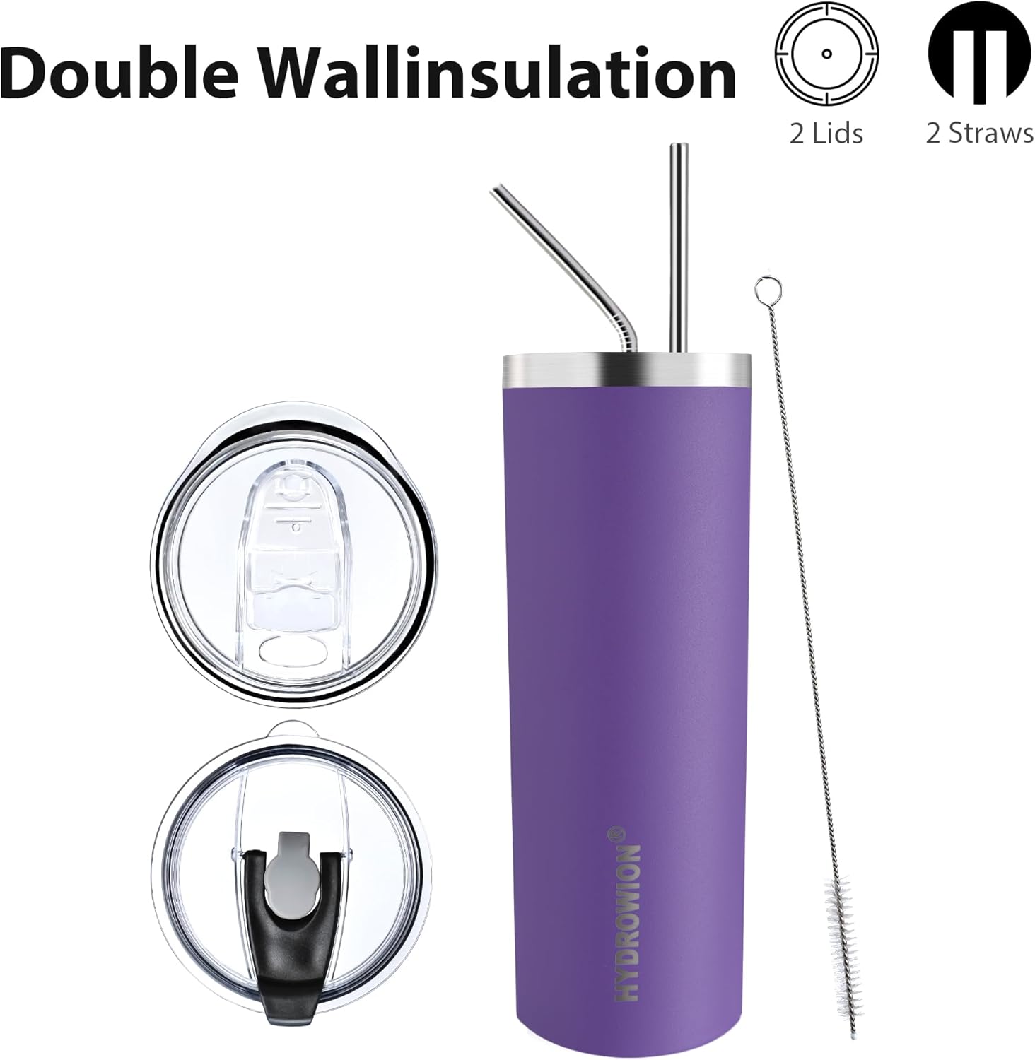 HYDROWION Triple-Insulated Tumblers - Stainless Steel with Lid and Straw, 20 oz Water Bottle, Stainless Steel Cups, Coffee Travel Mug for Home & Office Violet