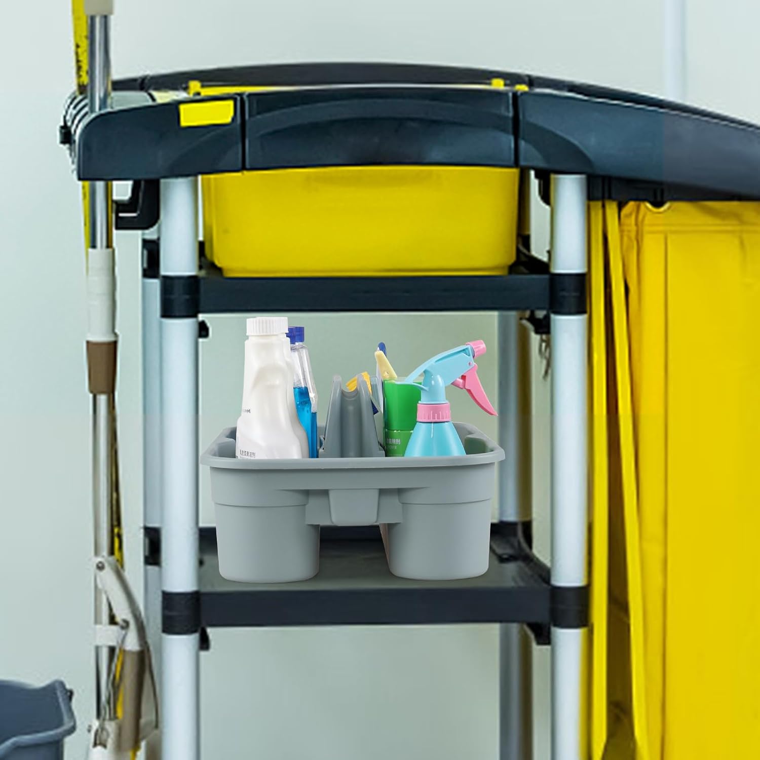 4 Packs 2 Compartment Plastic Cleaning Supplies Caddy, Multipurpose Portable Carry Tote with Handle, Grey