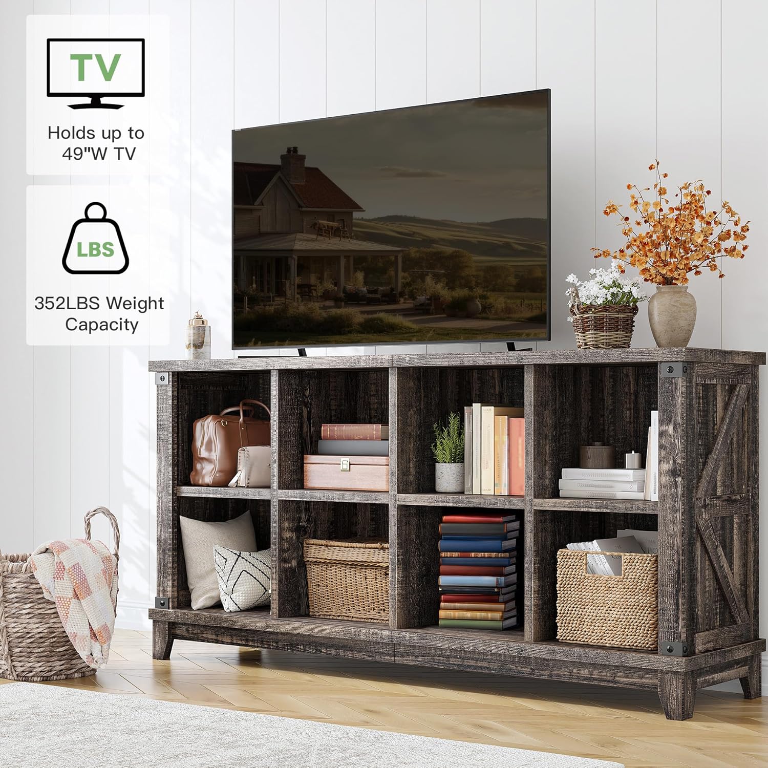 - 【49.1"W×11.8"D×27.1"H Farmhouse Bookshelves】Cube storage bookcase offers 8 cubes and measures 49.1"W×11.8"D×27.1"H. It provides ample storage space for a variety of items, including books, framed photos, storage baskets, potted plants, boxes, sculptures, clocks, TVs of the appropriate width, and decorative items. This product is suitable for use in a variety of settings, including living rooms, bedrooms and offices. It provides ample storage for books, decorations, and other items.