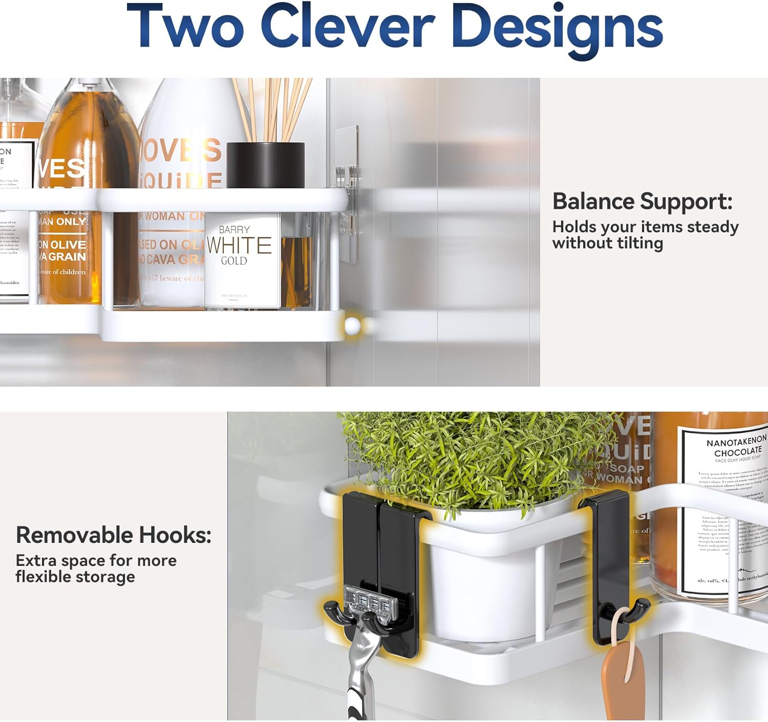 - 5-in-1 Shower Rack Set:Upgraded L-shaped corner shower shelves maximizes unused 90° wall space with 30% larger capacity than standard models. Holds 19+ full-size shampoo bottles (40lbs) - perfect for bathroom essentials, kitchen spices, or RV storage