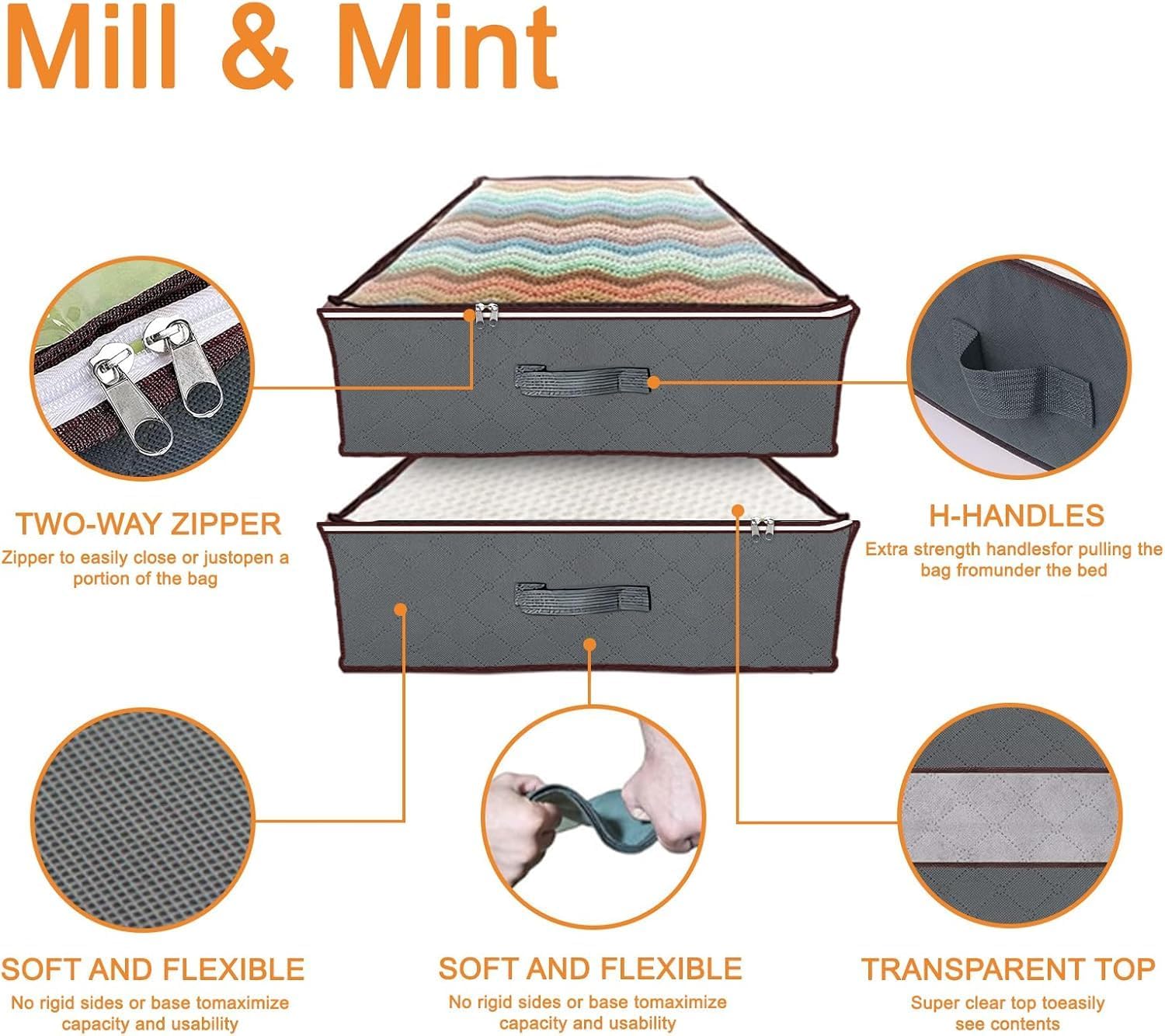 - STURDY HANDLE & ZIPPER - The 4 sturdy handles on the front and sides of the bags, you can pull them out from under the bed in any direction. And equipped with premium zippers and double-stitched with thick fabric, durable, sturdy enough to use for a long time.