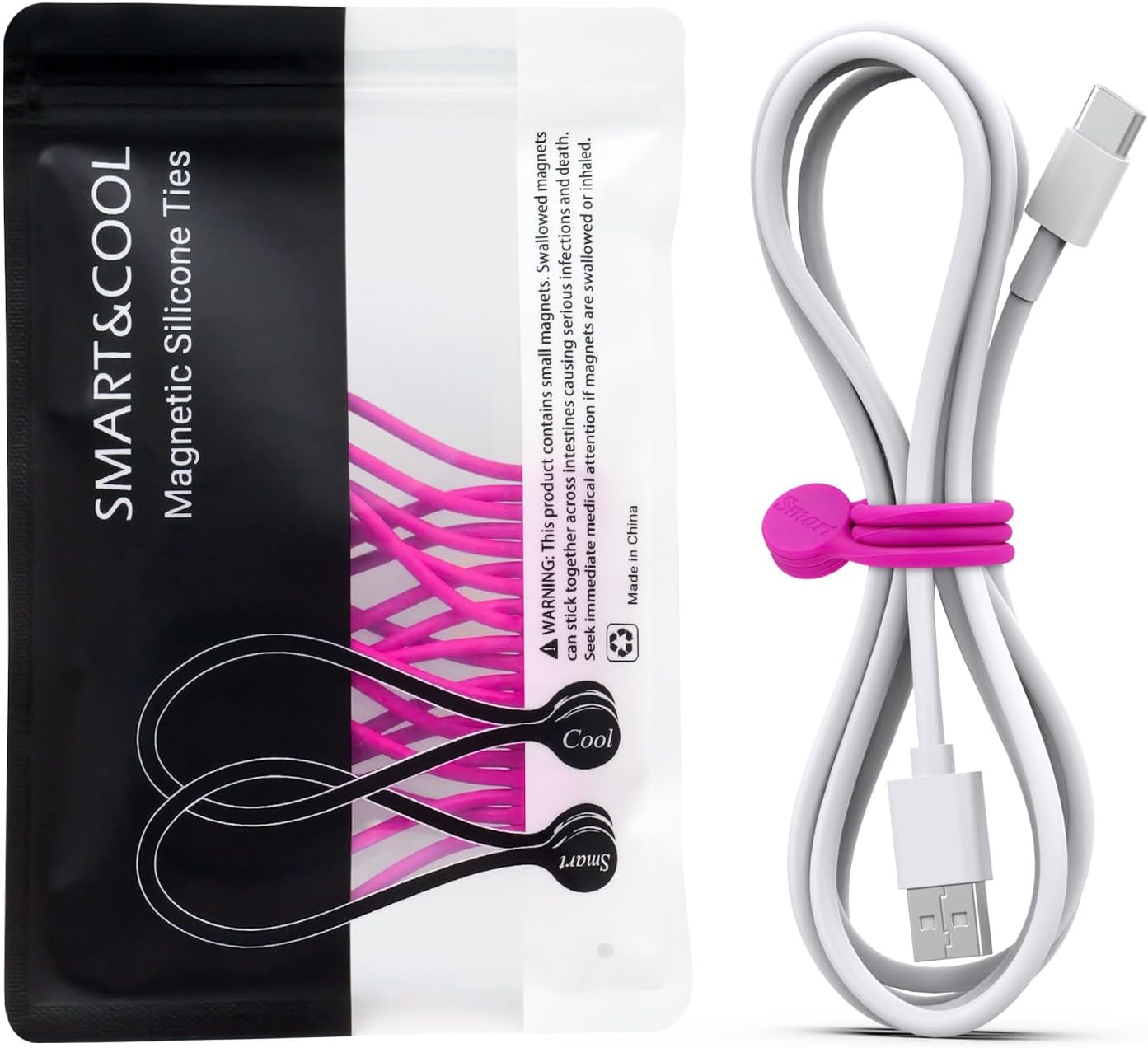 SMART&COOL Reusable Silicone Magnetic Cable Ties for Bundling and Organizing, Holding Stuff, Book Markers, Fridge Magnets, Assorted Color, 7.16'' (10-Pack, Pink)