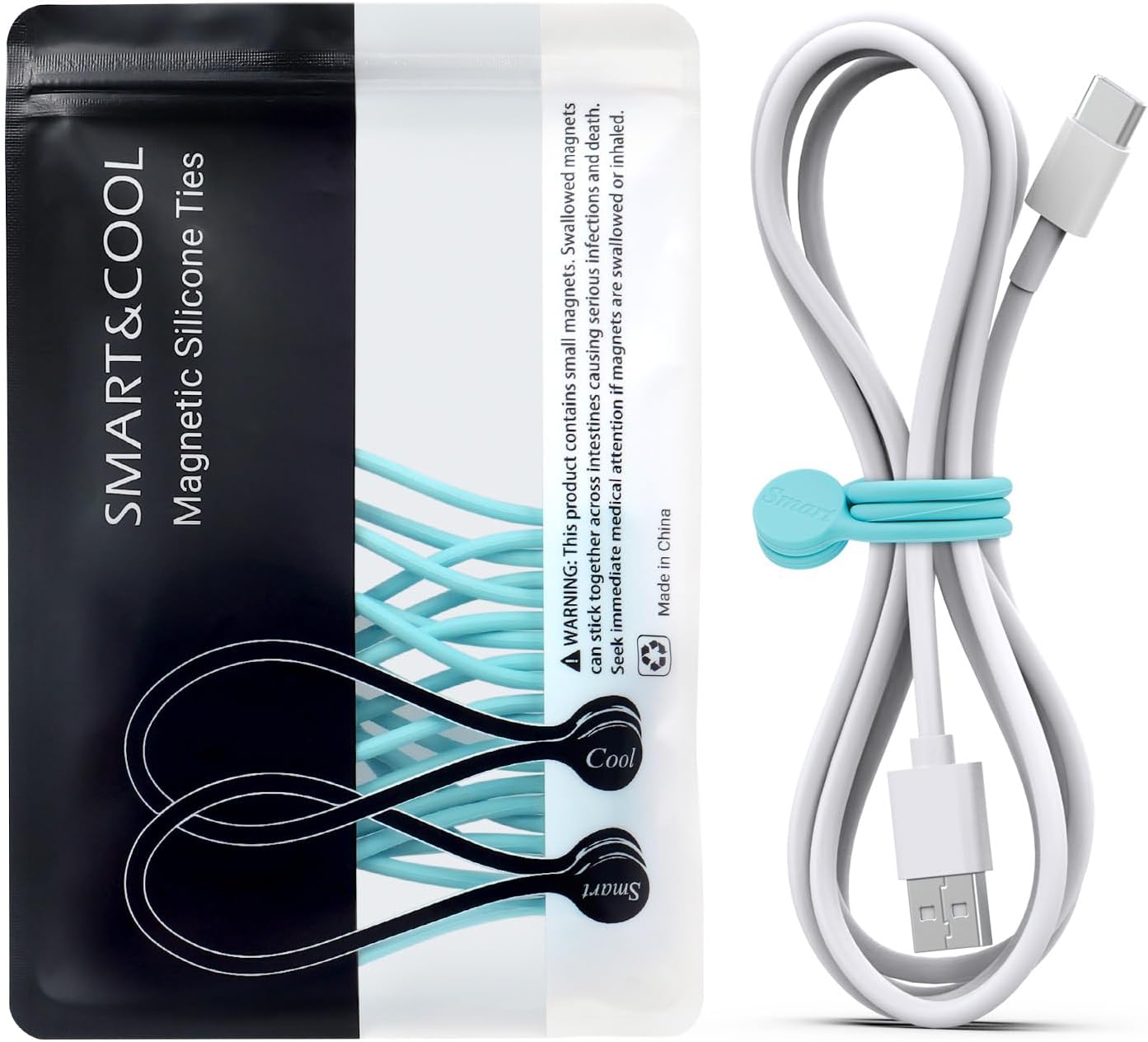 SMART&COOL Reusable Silicone Magnetic Cable Ties for Bundling and Organizing, Holding Stuff, Book Markers, Fridge Magnets, Assorted Color, 7.16'' (10-Pack, Aqua)