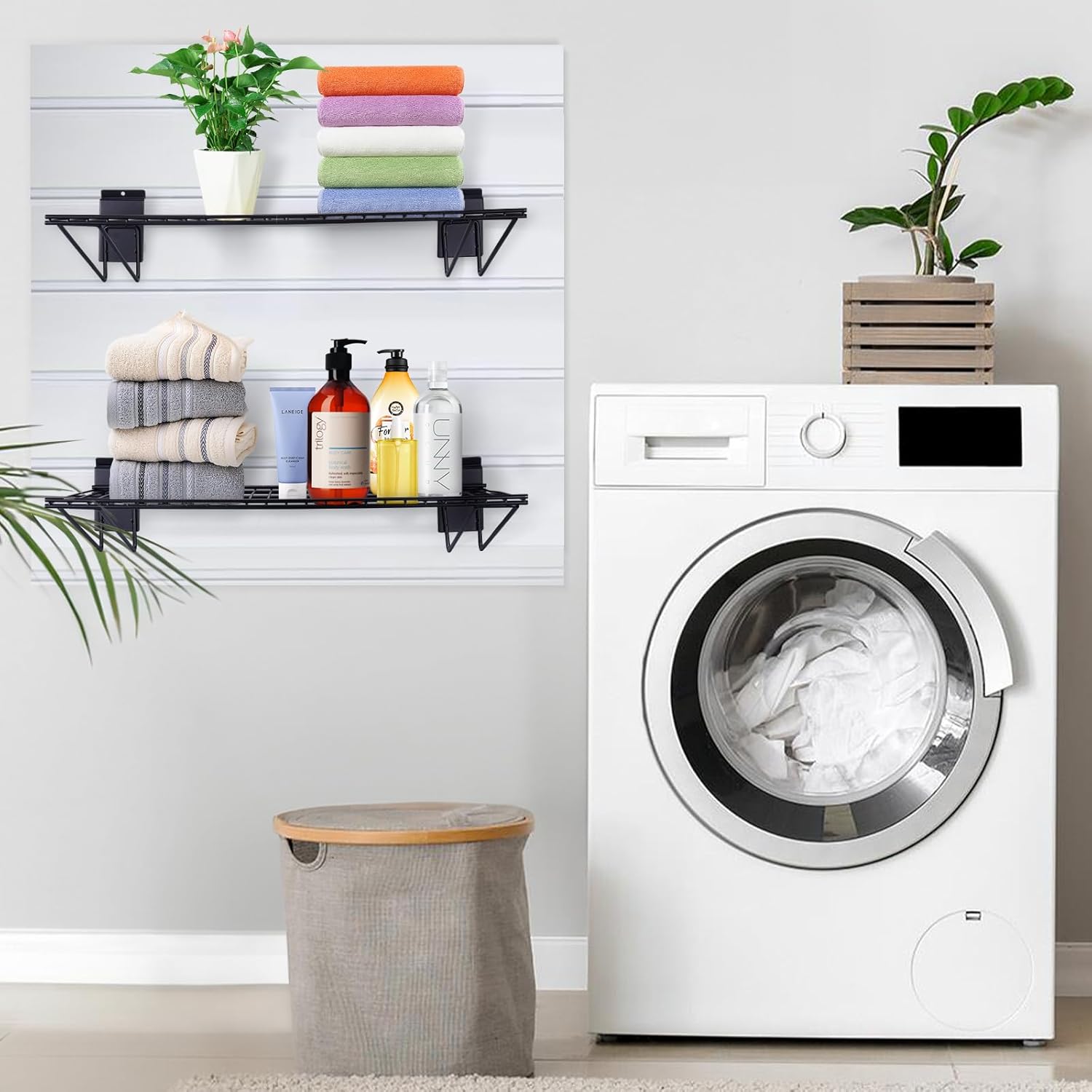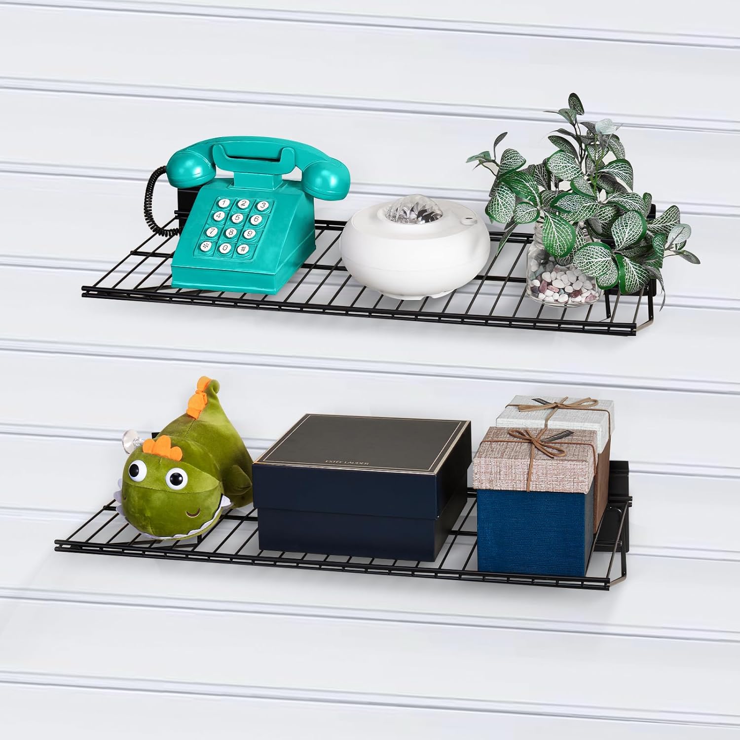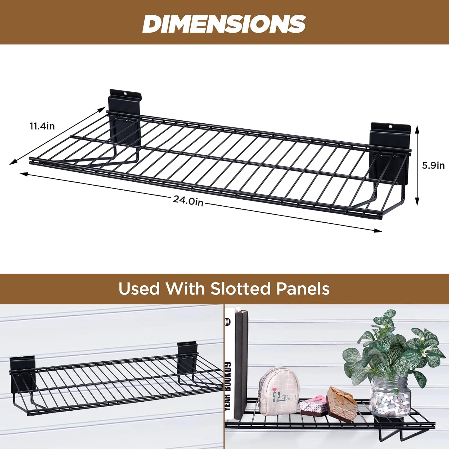 - Multi-Functional Storage: Our slatwall shelves measure 24 inches and are sturdy and durable. Provide versatile storage solutions for a variety of spaces with heavy-duty 24-inch slatwall shelving. The package includes two pieces of heavy-duty slatwall shelf, plenty of space enough to hold and place a variety of items. From garages and workshops to kitchens, bathrooms, offices, and retail environments, meet your various storage and daily needs