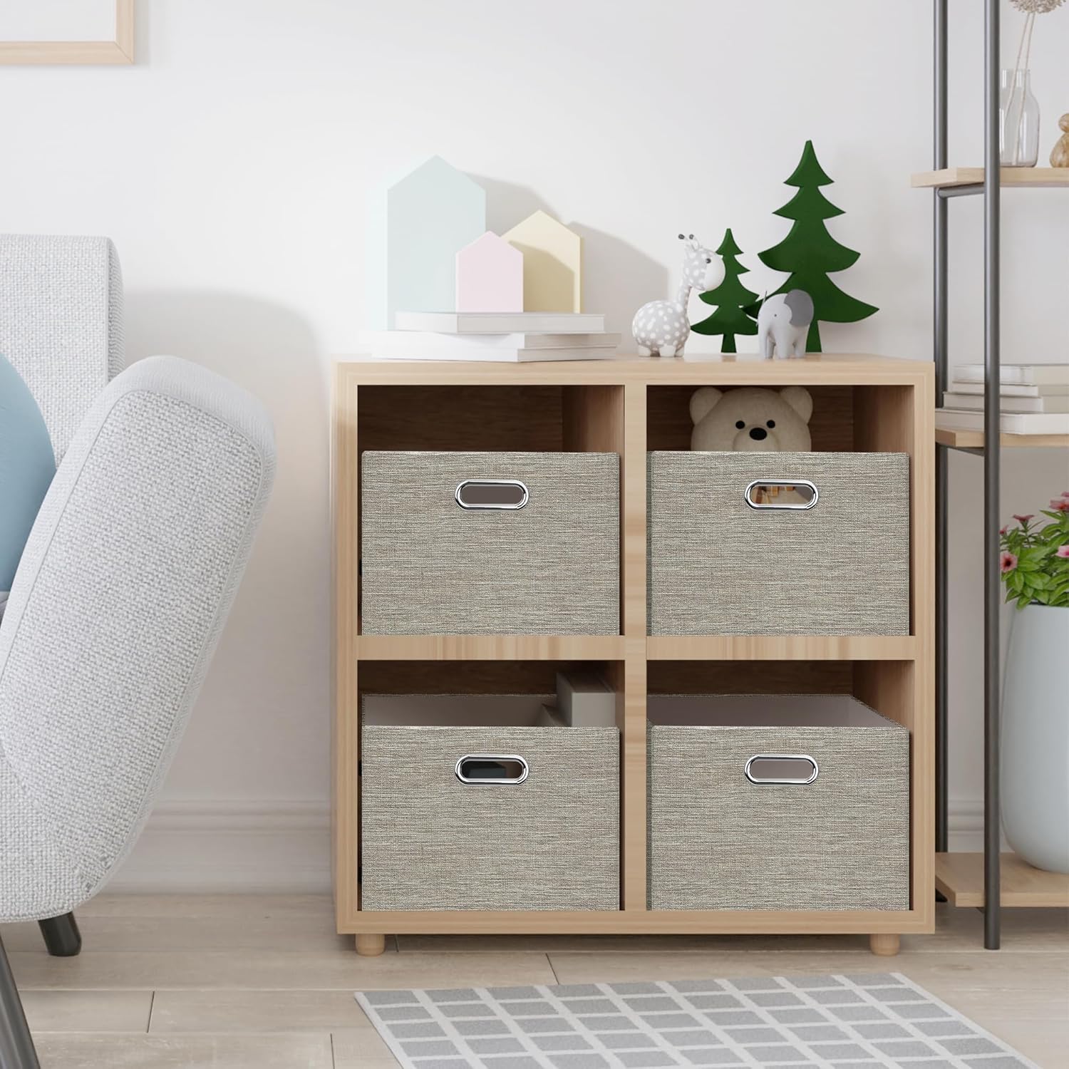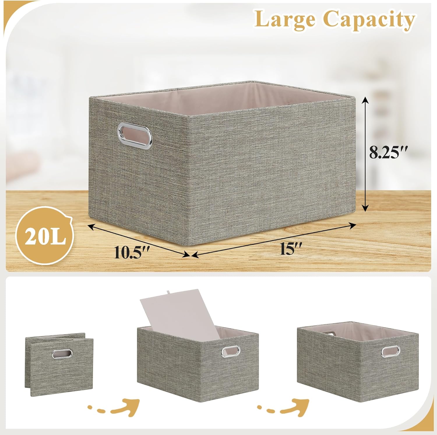 - Durable&Sturdy: The closet organizers and storage bins is made of high-quality shiny linen and thickened cardboard, without irritating smell. Adding metal handles allows the storage basket to move freely and decorate your shelves and cabinets.